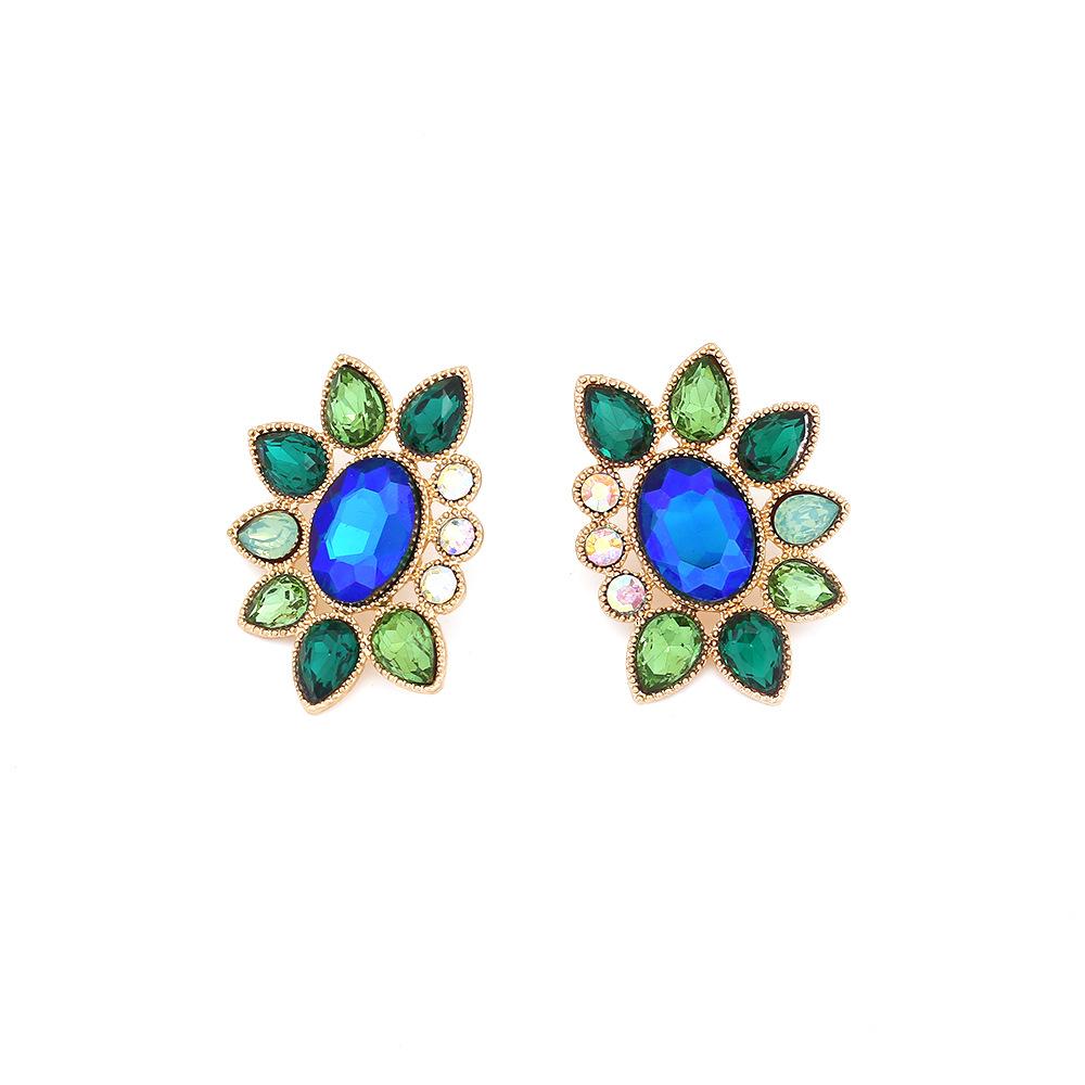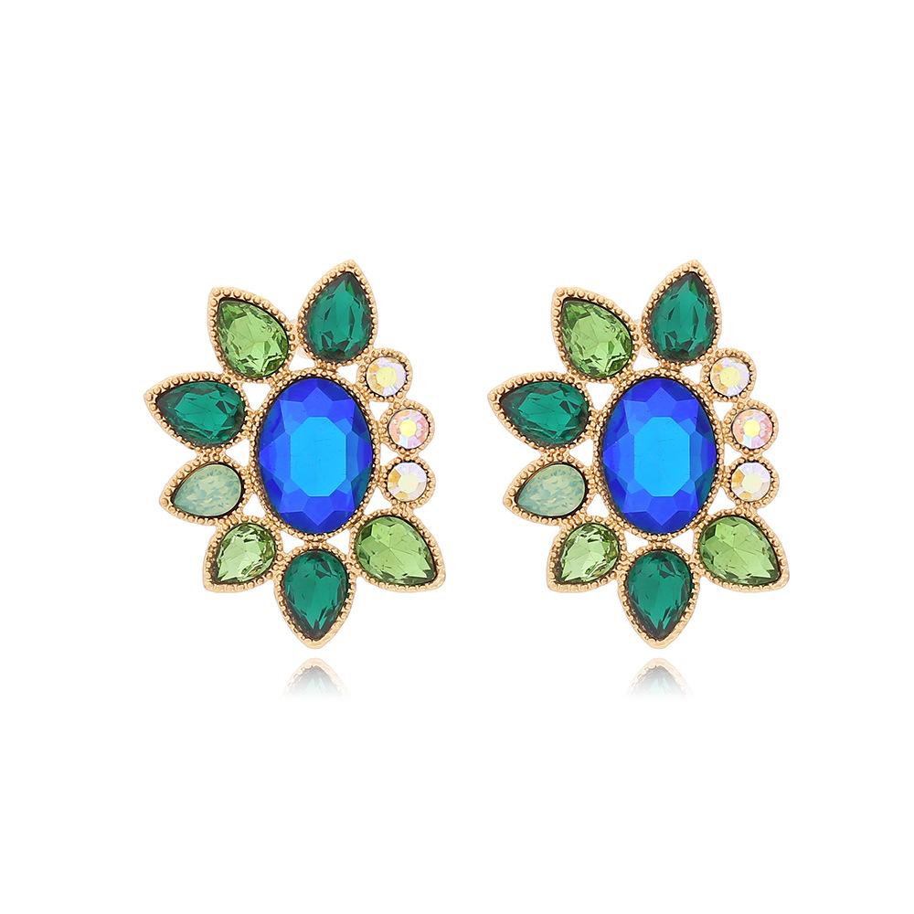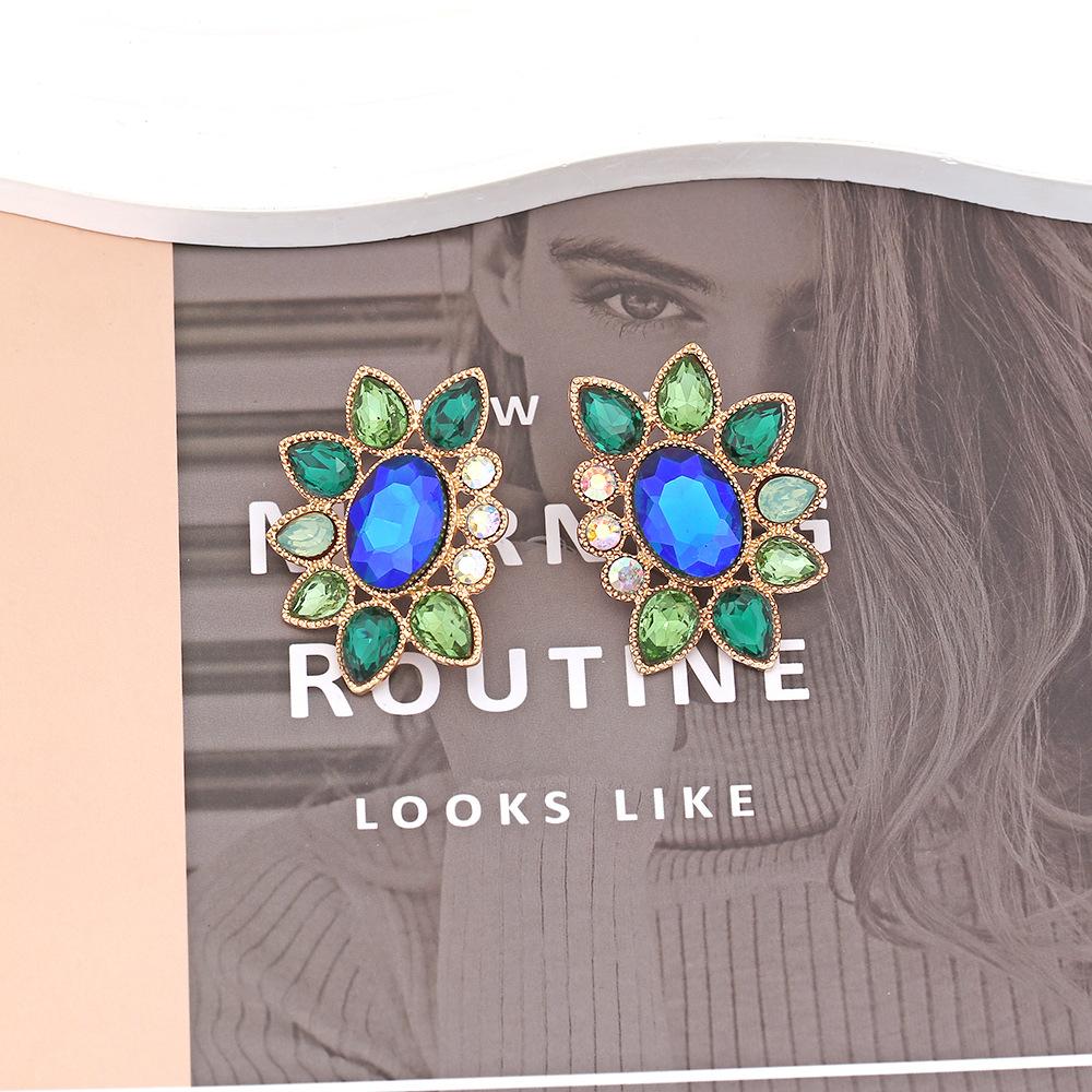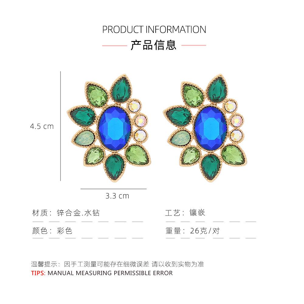 Pendientes de flores de diamantes de colores de alta calidad Super Flash europeos y americanos, pendientes de flores de diamantes creativos exagerados, pendientes retro transfronterizos para mujeres