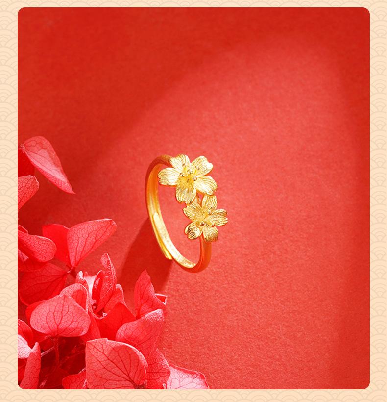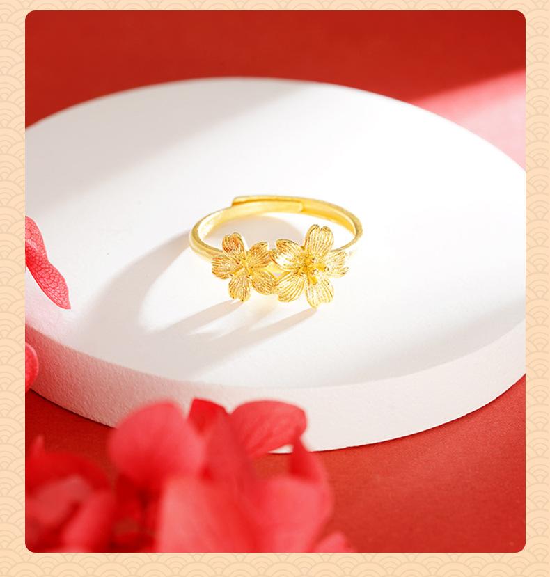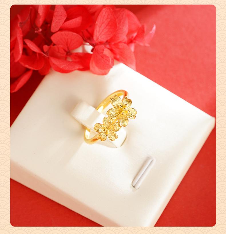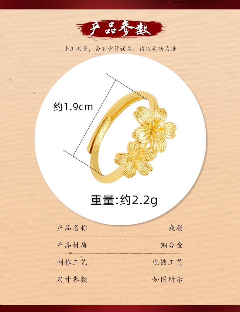 Anillo de Camelia de Oro Arena Vietnamita para Mujer que No se Desvanece por Mucho Tiempo, Diseño Nicho, Estilo Simple Personalizado Latón Decorado Anillo Abierto