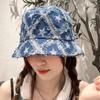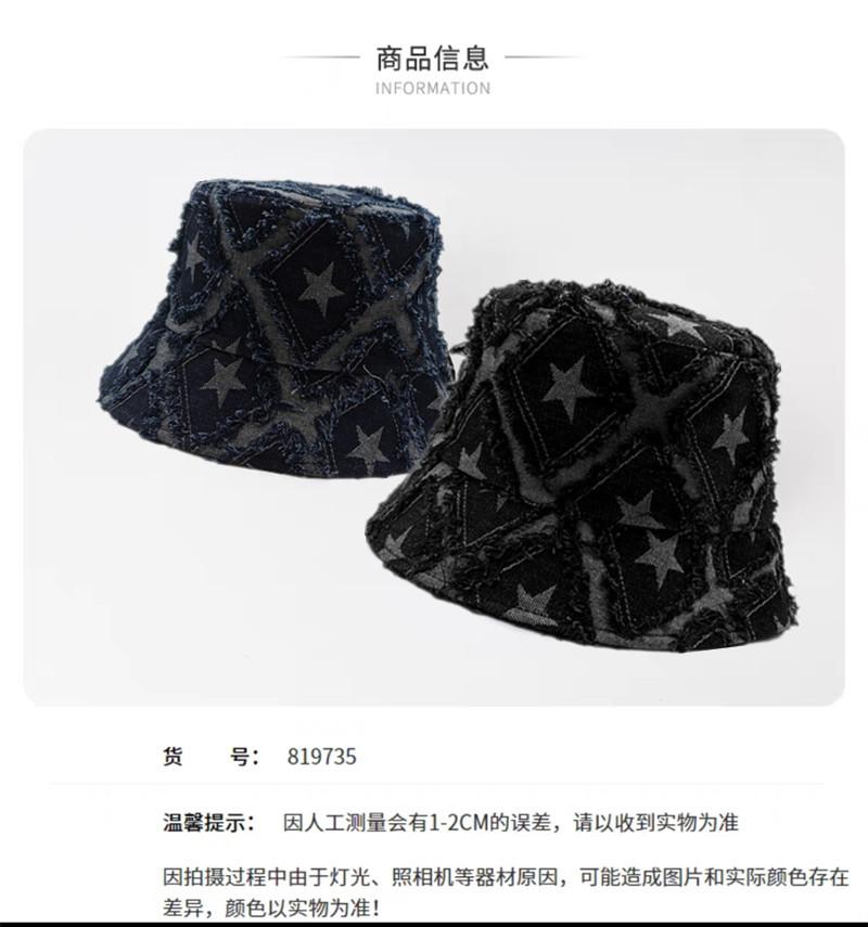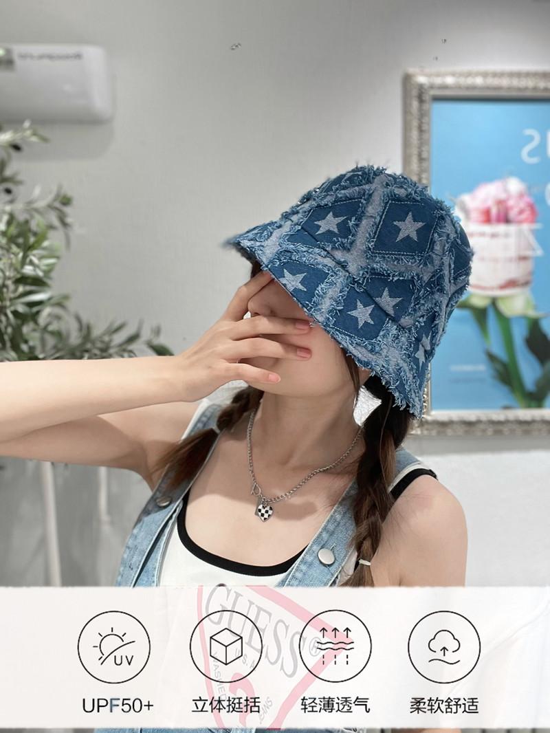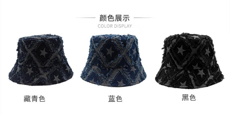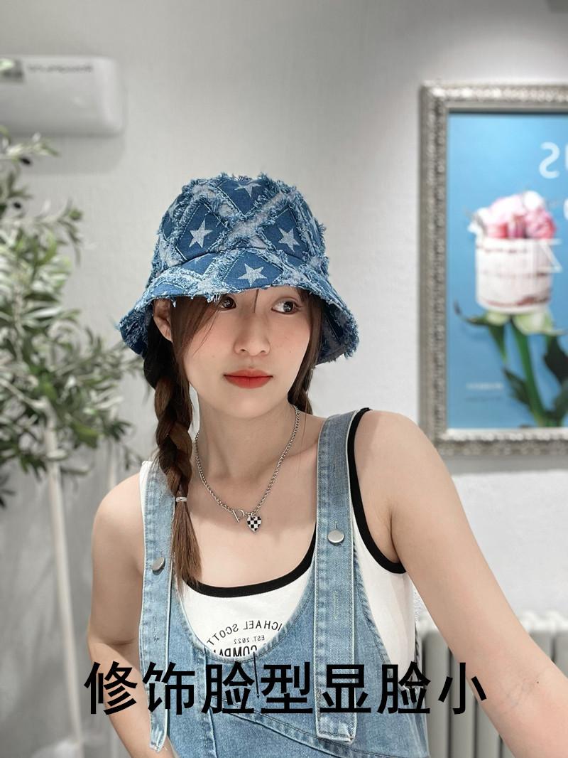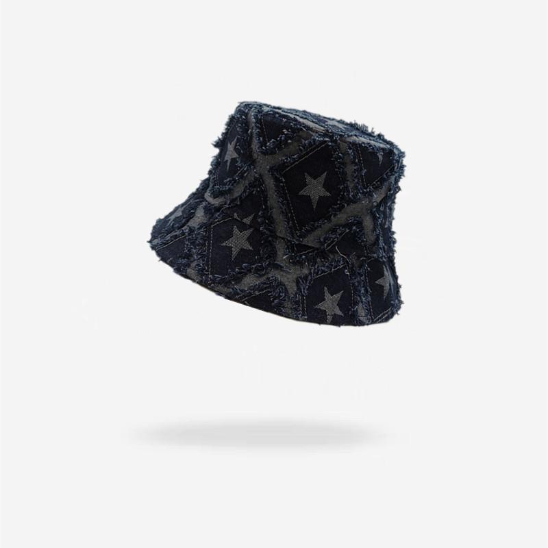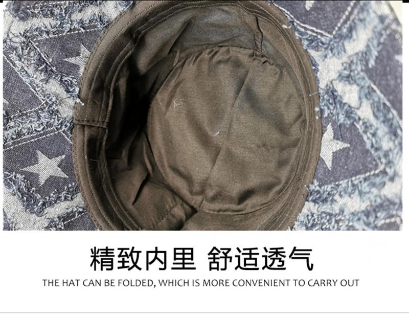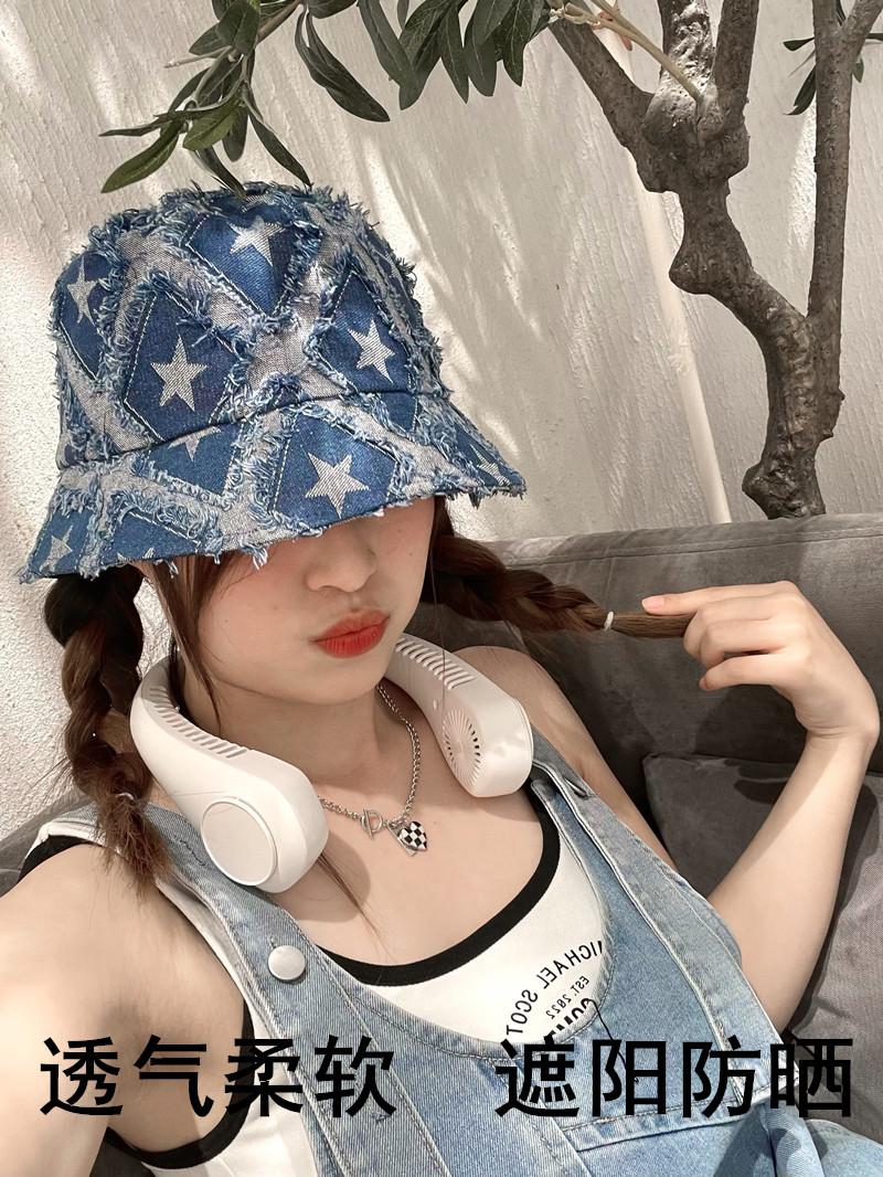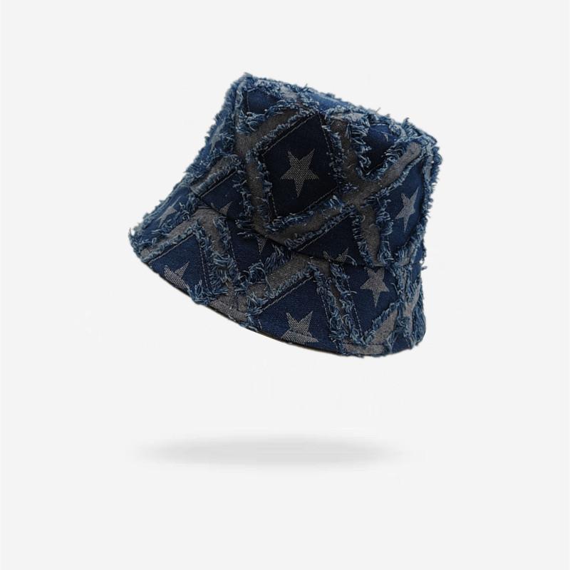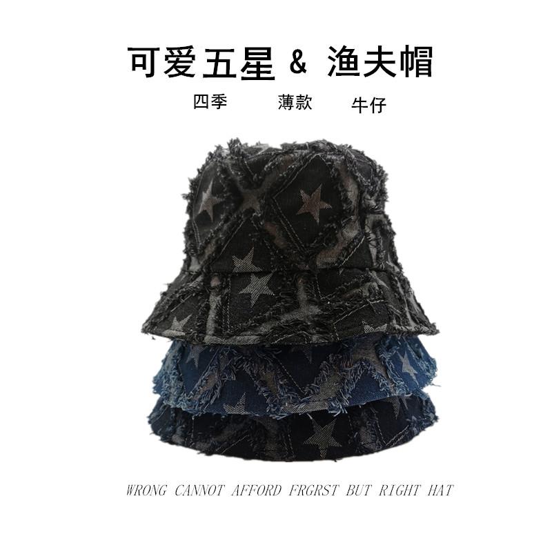 Sombrero de Mujer Verano Nuevo Mezclilla Estrella de Cinco Puntas Roto Sombrero de Pescador Moda Japonesa Retro Popular en Internet Cara Pequeña Sombrero Cubeta