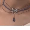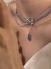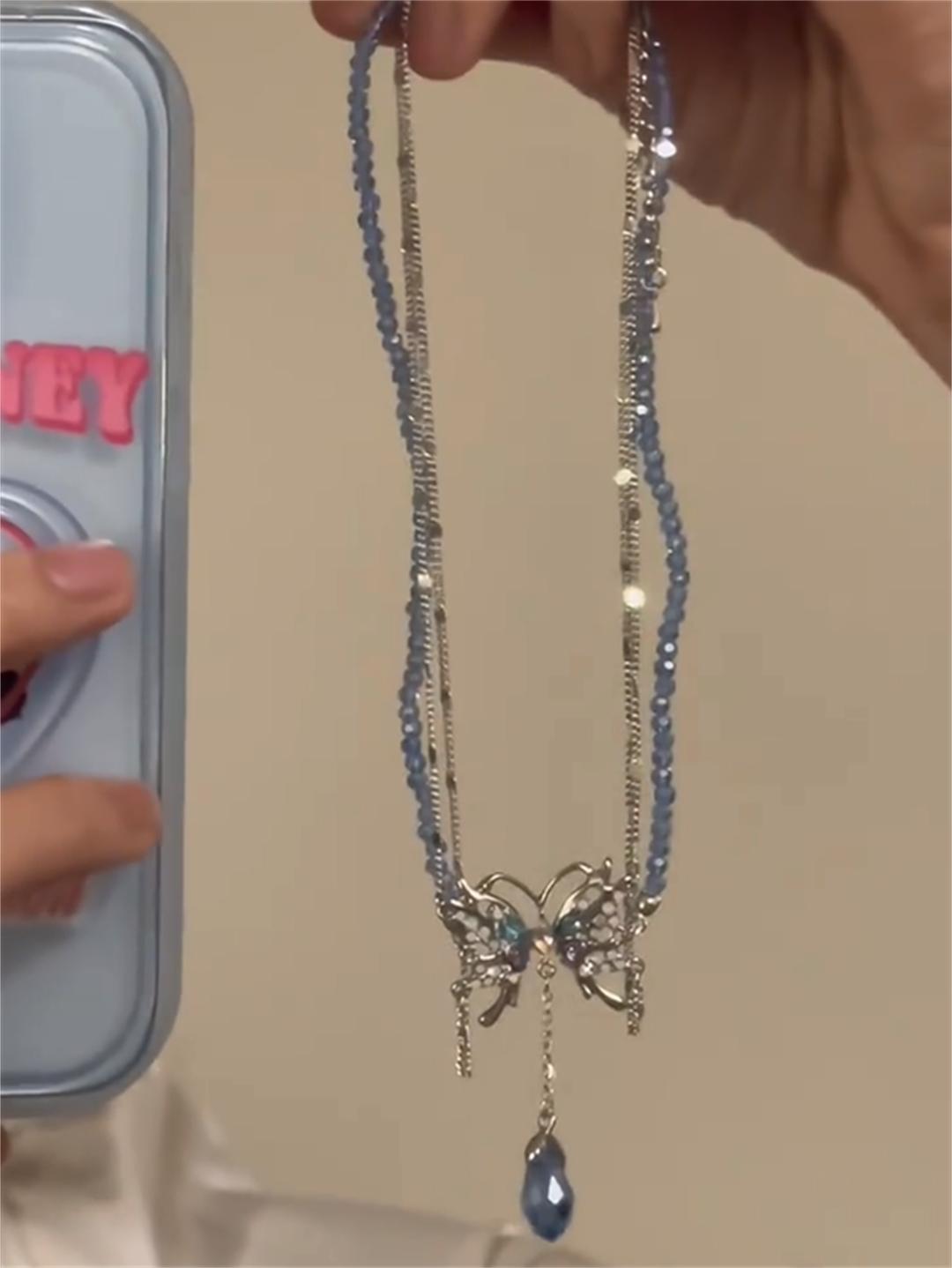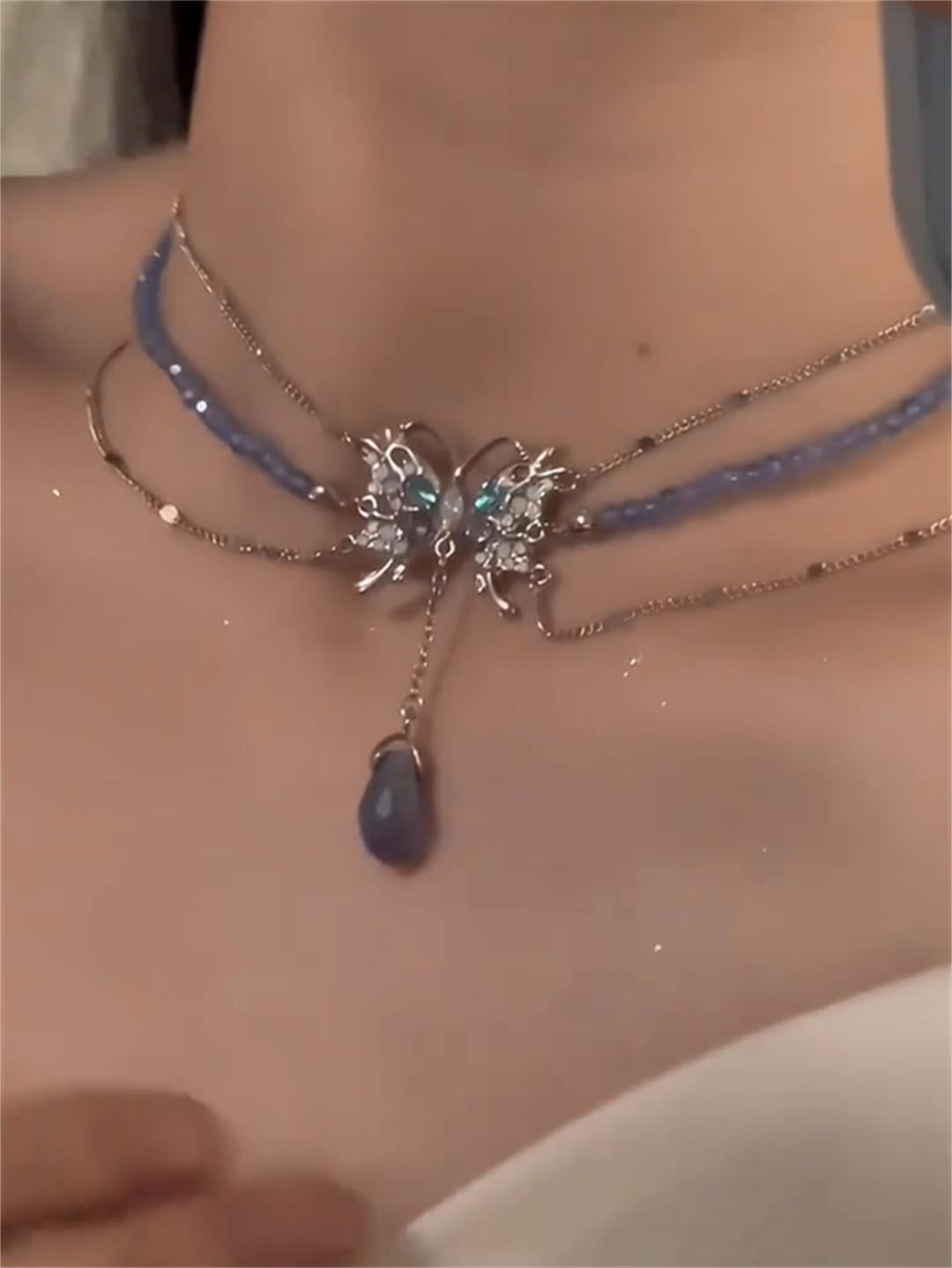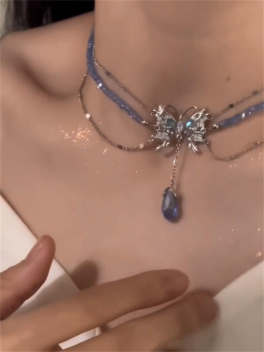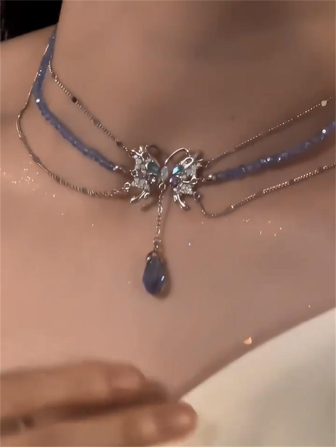 Collar de mariposa líquida azul para mujer, diseño de nicho con perlas y cadena de clavícula con cuentas, novedad de 2023