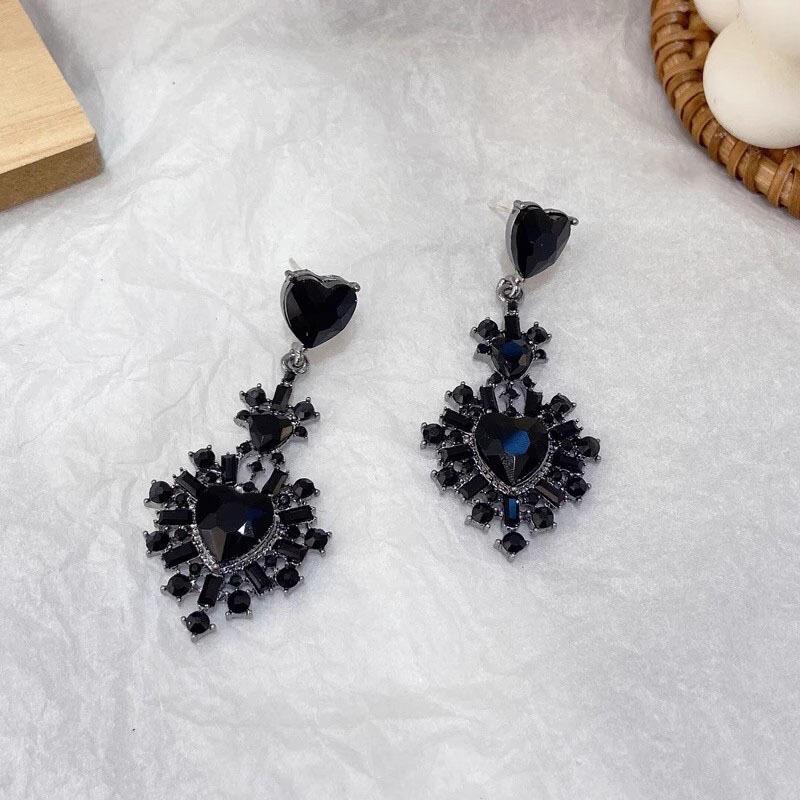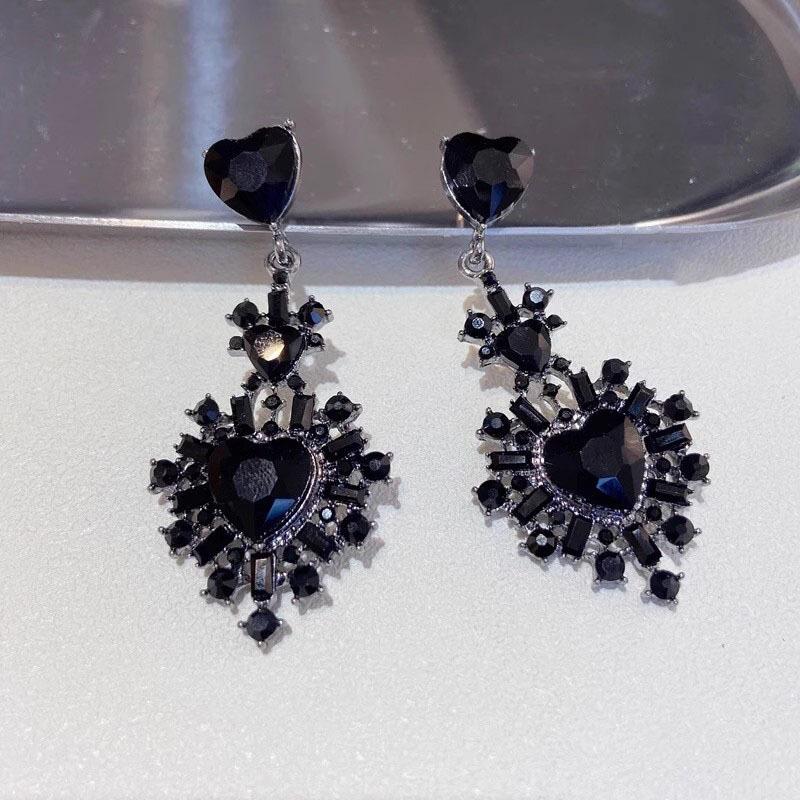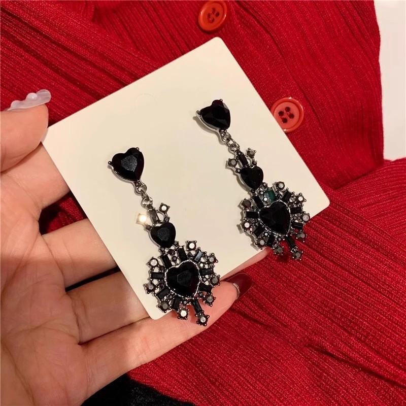 Pendientes de diamantes de imitación negros de estilo retro, de lujo, ligeros y de alta calidad, con diseño de nicho, sencillos, elegantes y exquisitos.