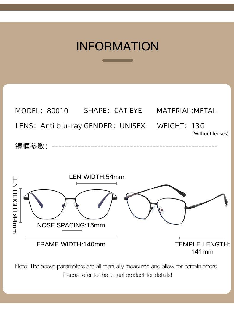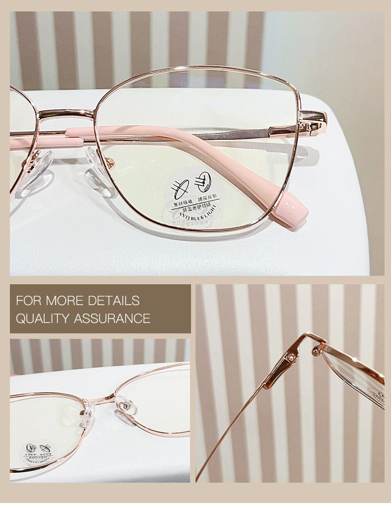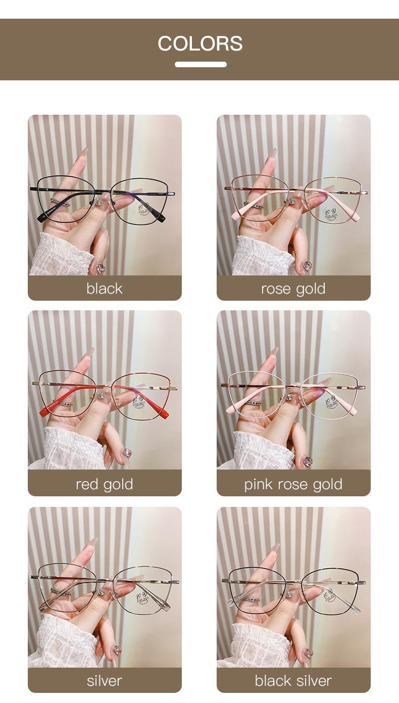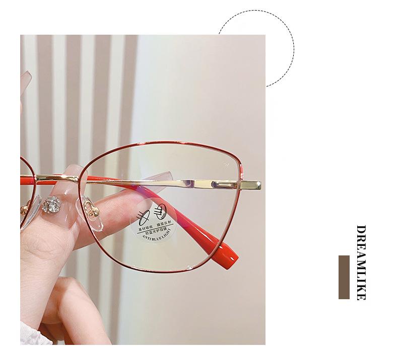 2023 nuevas gafas transfronterizas con marco de metal anti-luz azul, gafas ópticas femeninas con montura de ojo de gato, se pueden equipar con grados