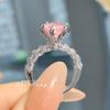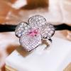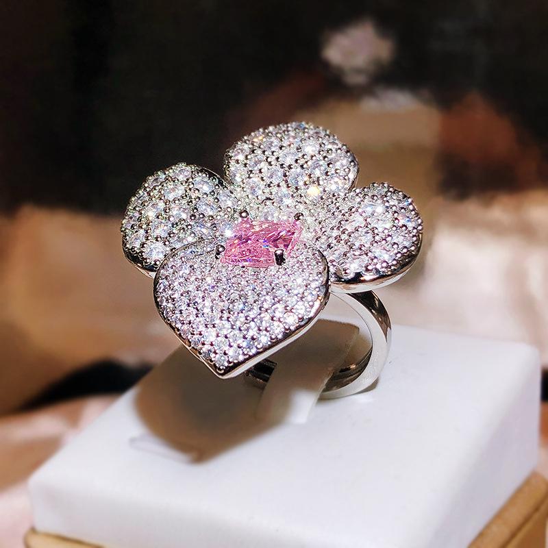 Lujoso anillo de diamantes completos con rico diseño floral cuadrado biselado de imitación Corte Flor de Hielo Rosa diamante de alto carbono