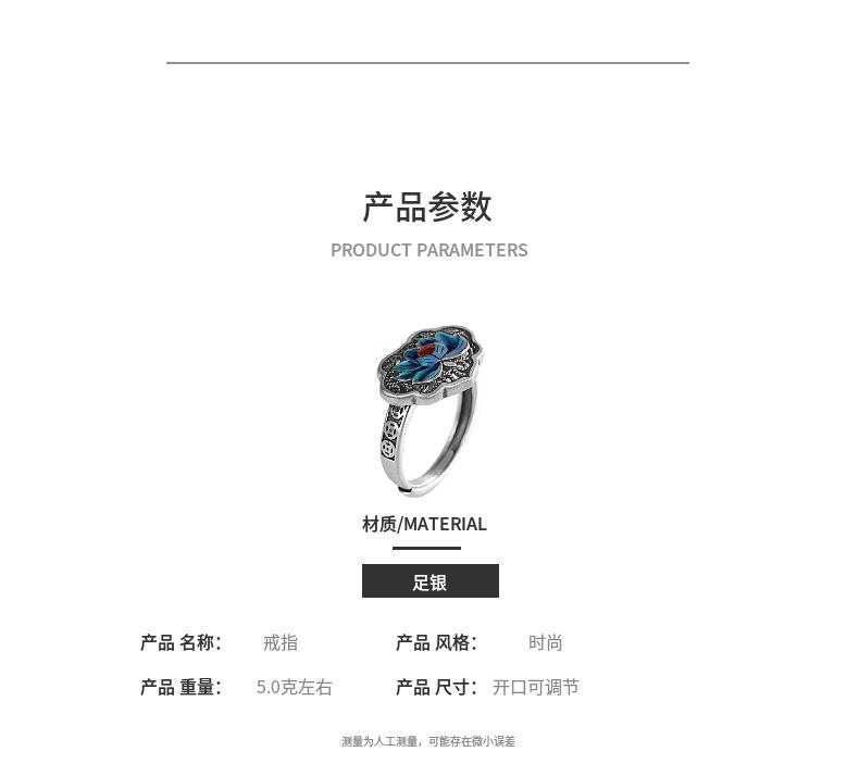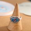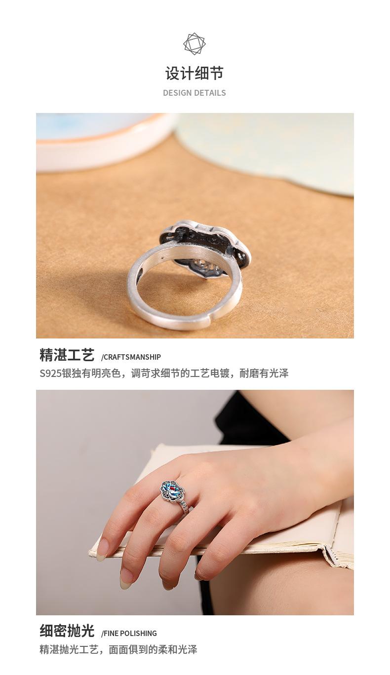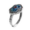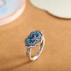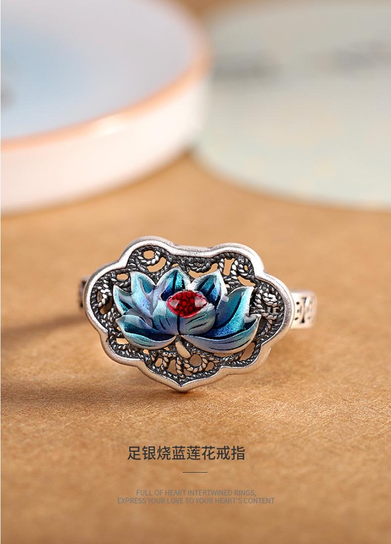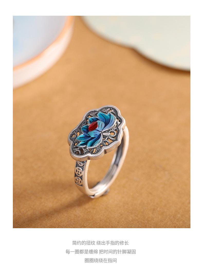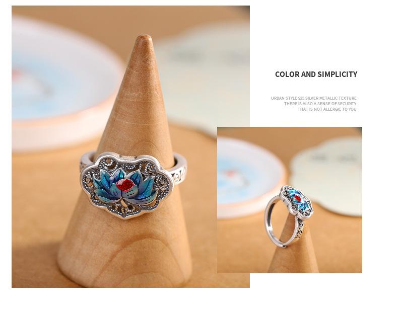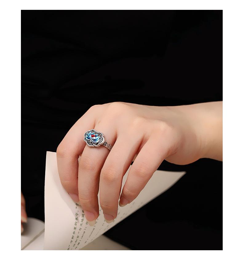 Anillo Loto Azul Quemado Hueco Estilo Chino Vintage Moda Simple Versátil Anillo Abierto para Mujer