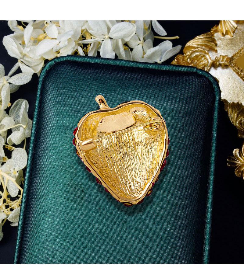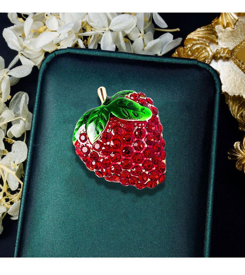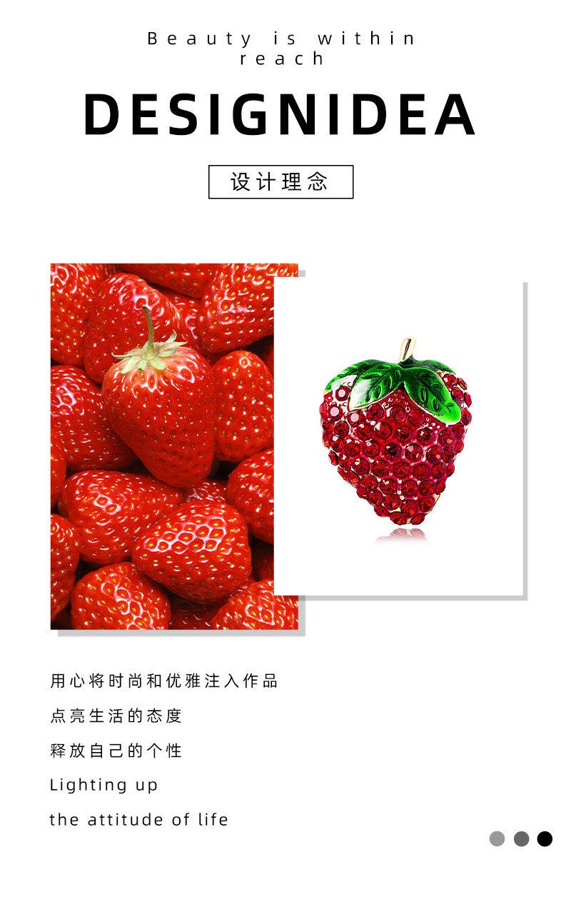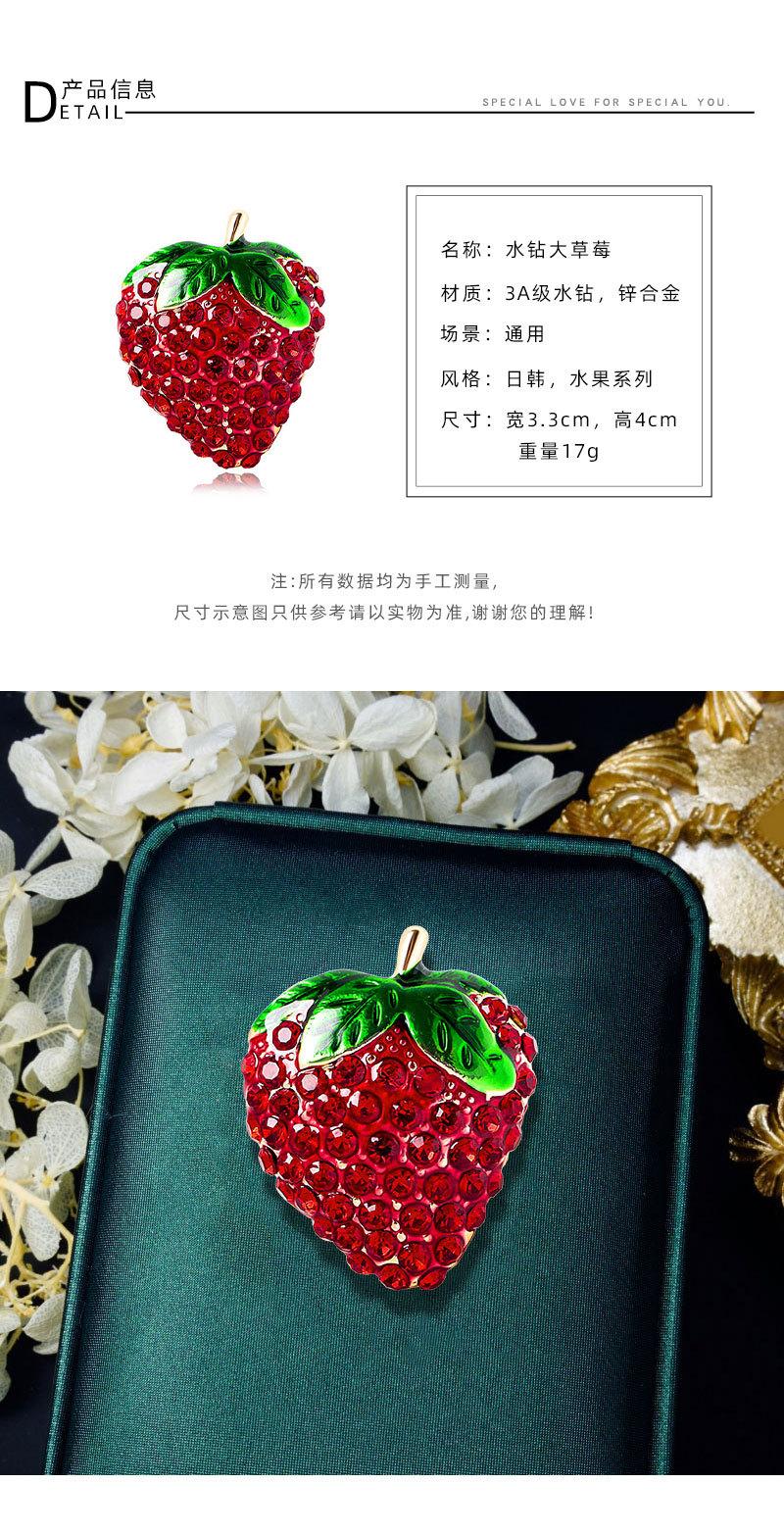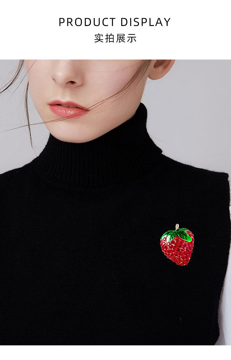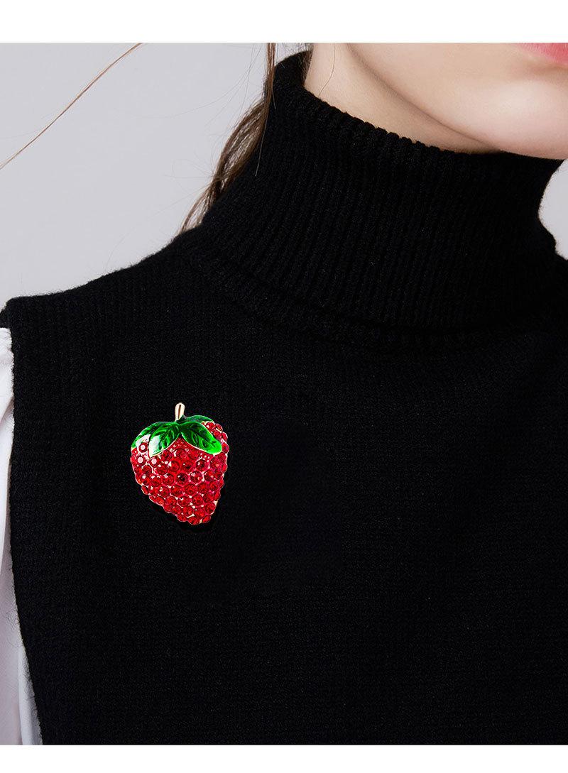 Broche de fresa con diamantes de imitación transfronterizos de Europa y América, ramillete de aleación creativa con diamantes de imitación, broche de fruta de moda, accesorios de ropa sencillos