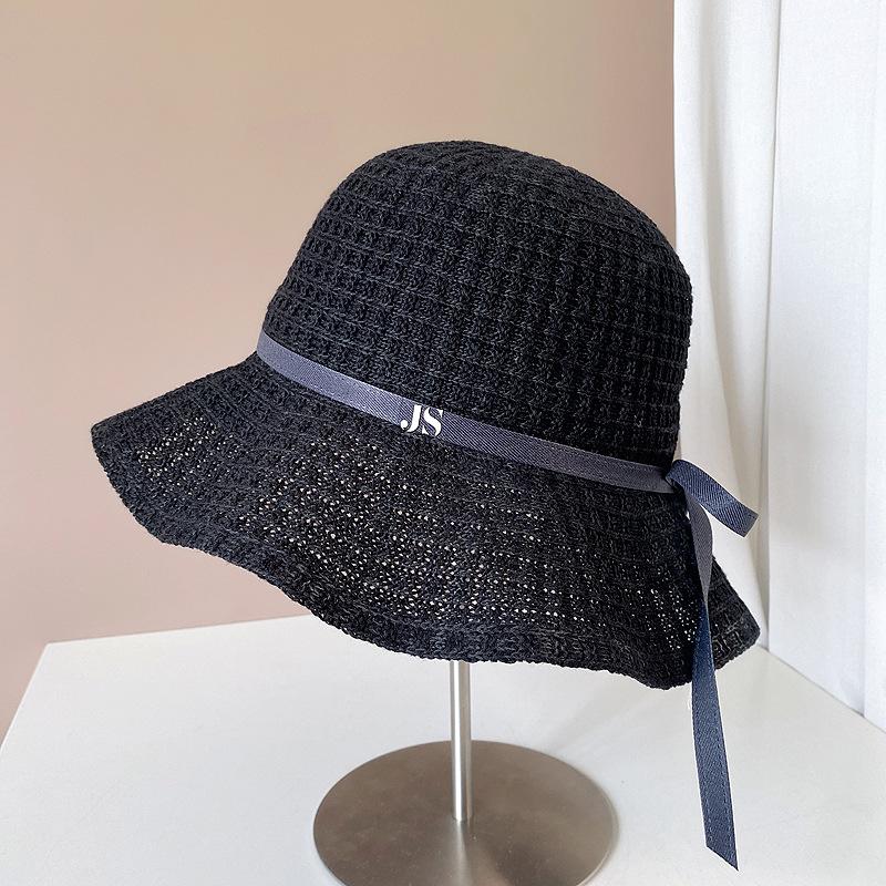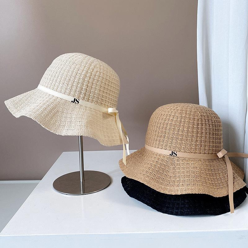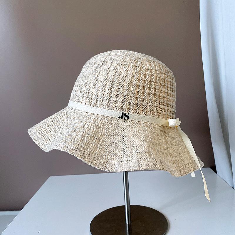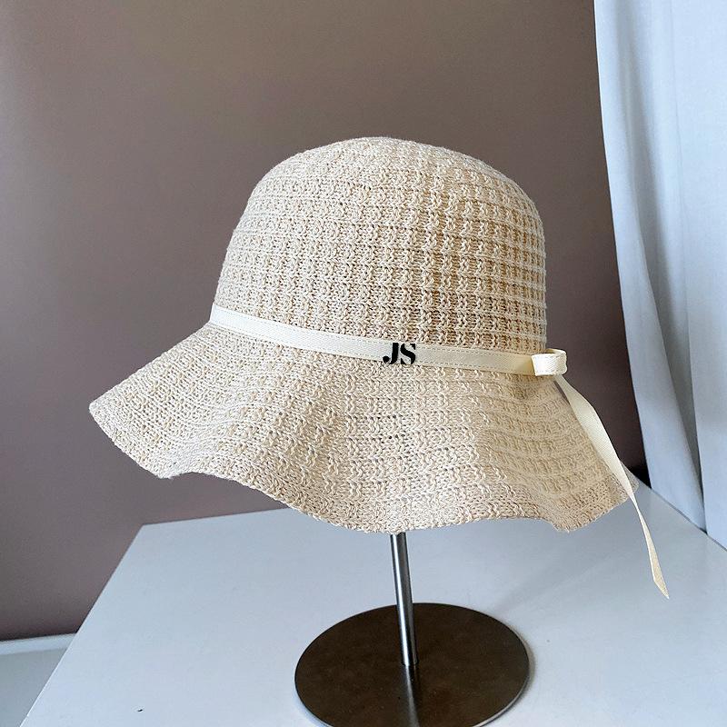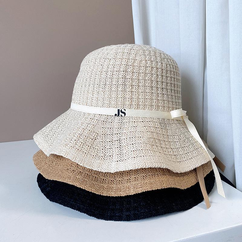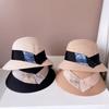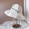 Sombrero de pescador decorativo con cinta de letras con volantes para mujer, primavera y verano, transpirable, combina con todo, sombrero de cubeta, protección solar, sombrero tejido de moda