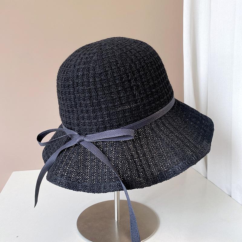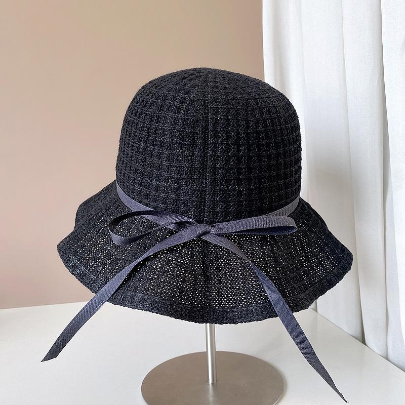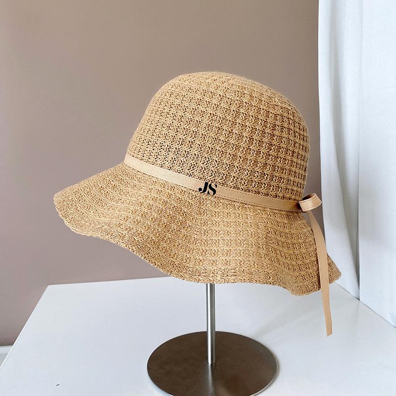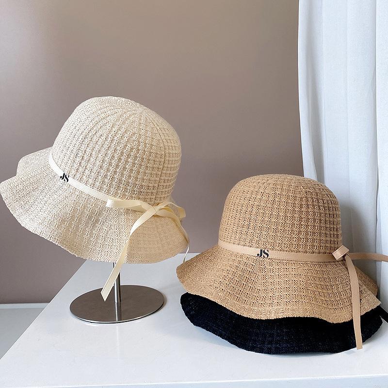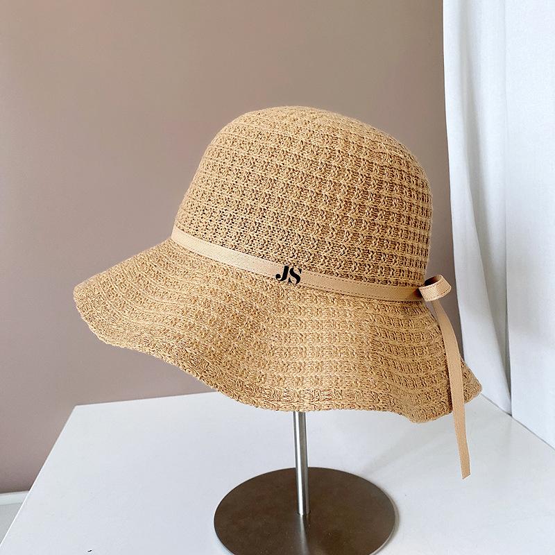 Sombrero de pescador decorativo con cinta de letras con volantes para mujer, primavera y verano, transpirable, combina con todo, sombrero de cubeta, protección solar, sombrero tejido de moda