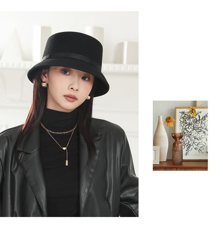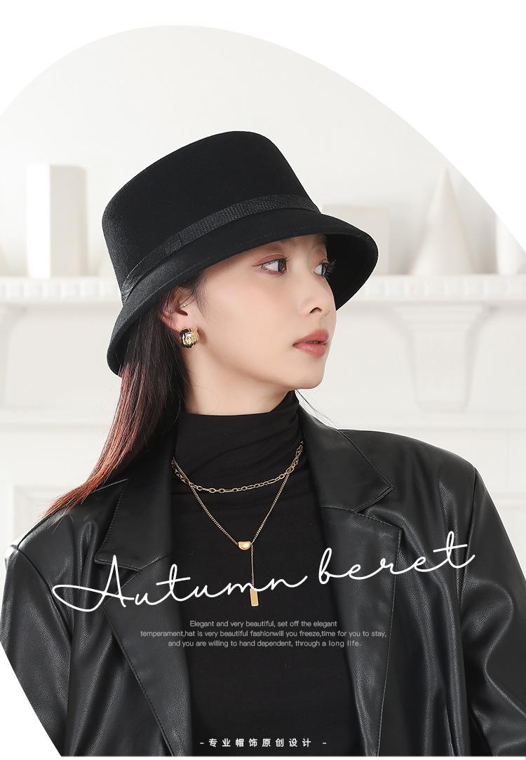 Sombrero de Fieltro Estilo Hepburn Otoño e Invierno 2025 Boina Retro Francesa de Celebridad Sombrero de Cubeta de Ala Pequeña Temperamento Elegante Sombrero de Pescador