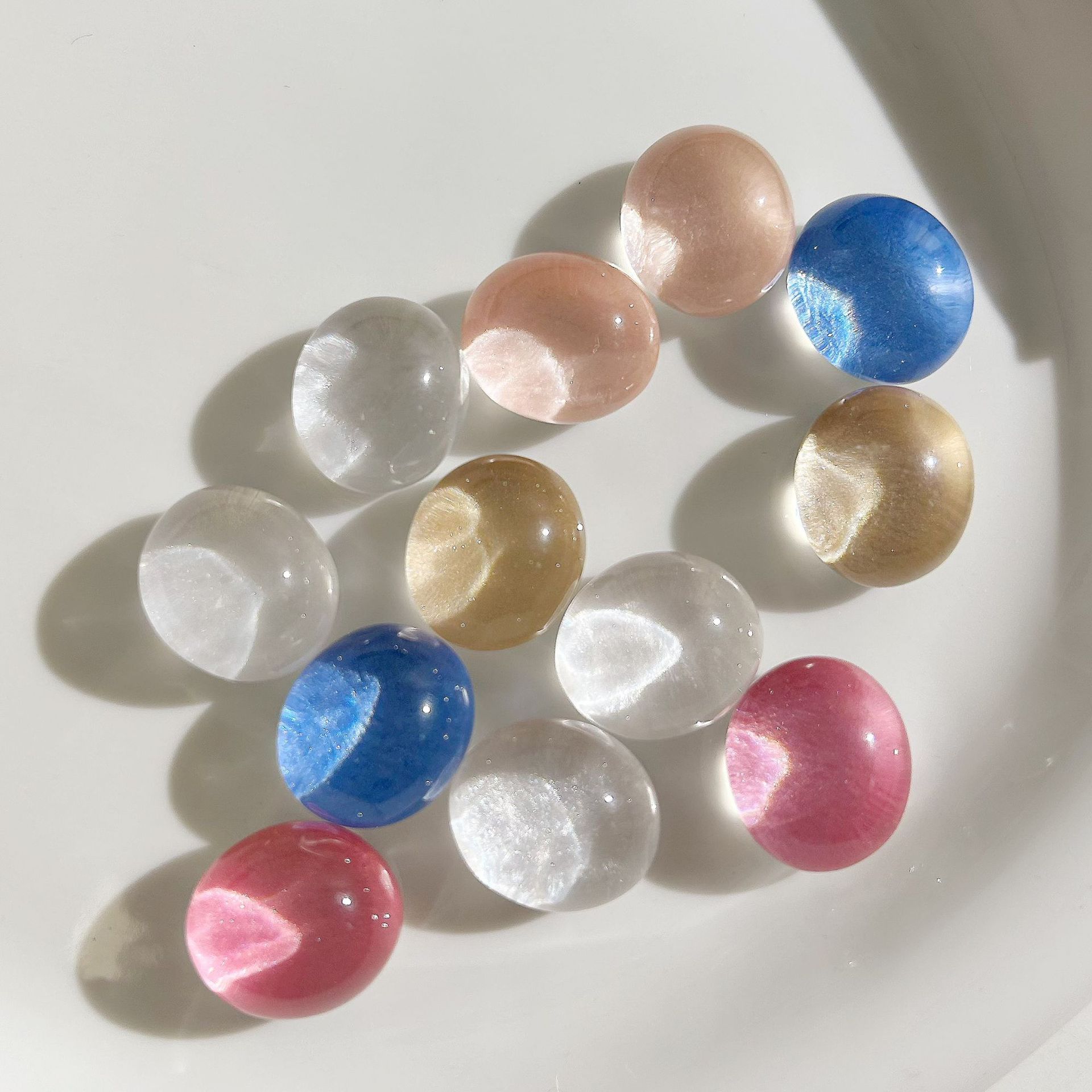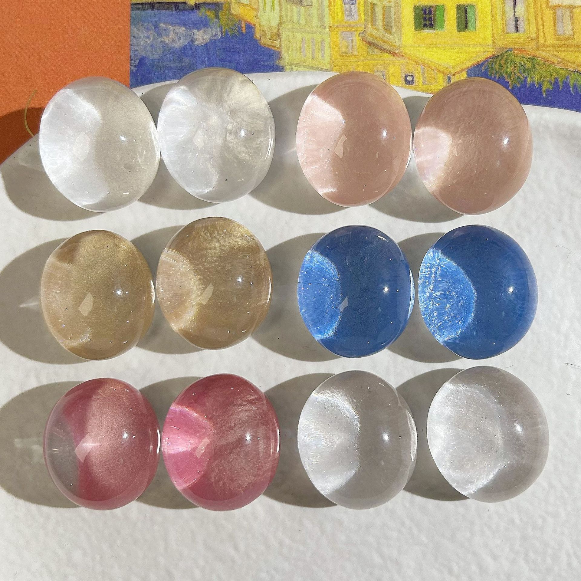 Parche de resina semi-píldora ovalado con purpurina de cielo estrellado transparente al estilo coreano, pendientes para hacer uno mismo, tocado, funda para teléfono, material al por mayor