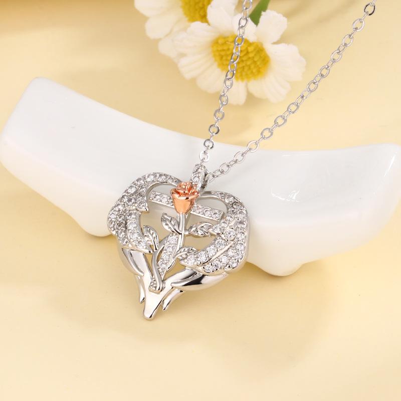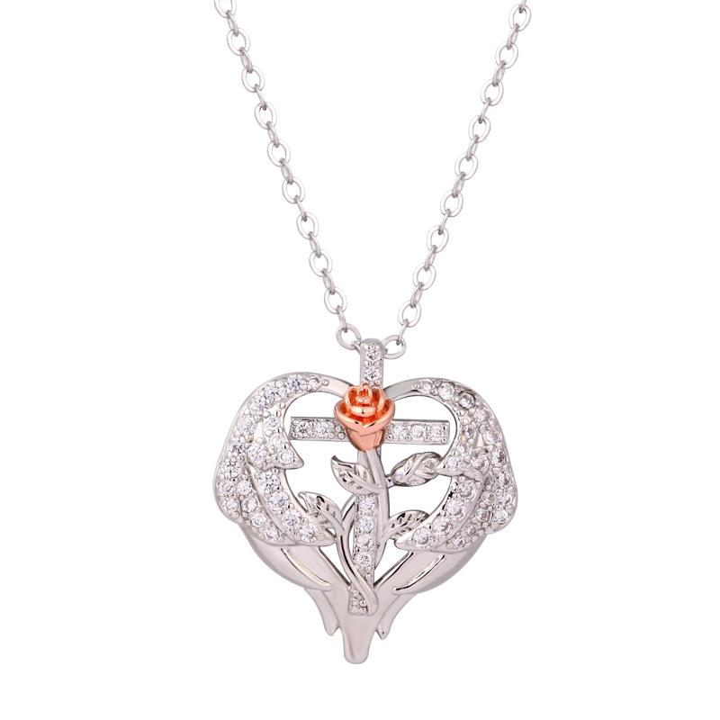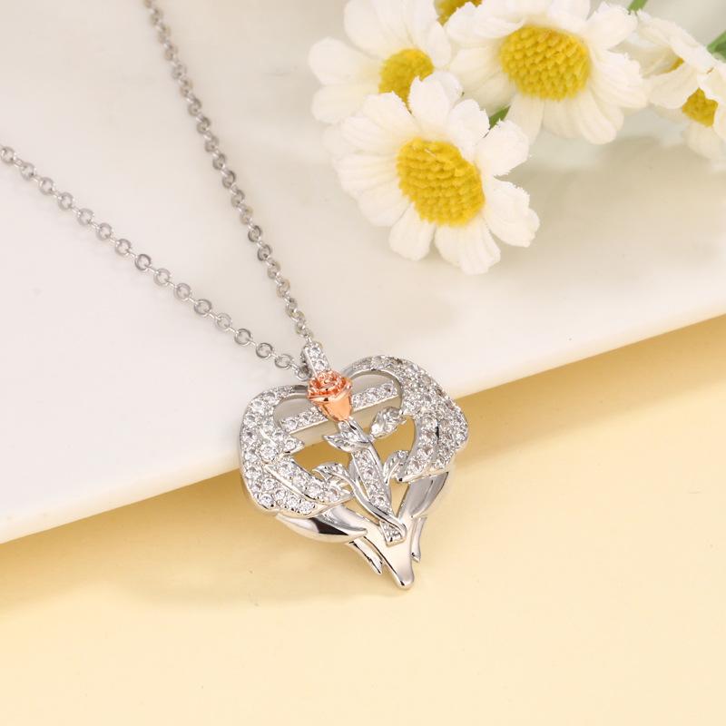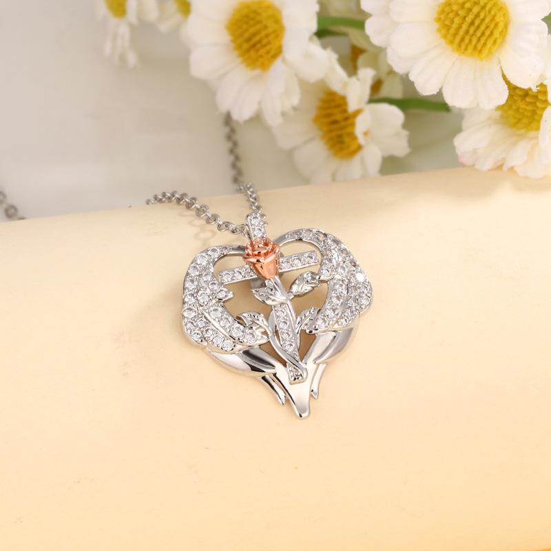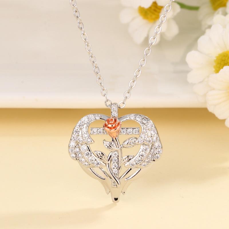 Colgante de flor de amor transfronterizo de Amazon, Europa y América, con microincrustaciones de circonita, corazón, cruz, cadena de clavícula rosa
