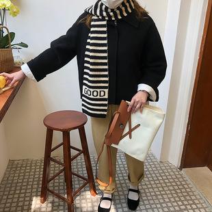 Bufanda coreana estilo japonés simple invierno extra grande gruesa cálida a rayas 2022 bufanda femenina bufanda de punto coreana femenina |