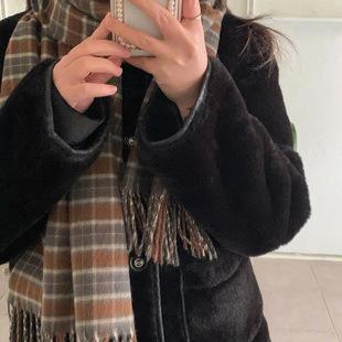 Bufanda coreana de cuadros de 4 colores gris nublado con borlas de imitación cachemira invierno cálida bufanda de cuadros para hombres y mujeres |