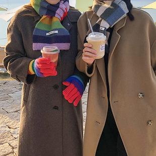 Bufanda coreana de mohair tejida a rayas arcoíris, invierno, nueva moda, rayas de colores cálidos, bufanda de estudiante para mujer |