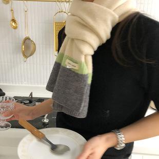 Bufanda de punto estilo universitario de invierno 2022, cálida, de gran tamaño, estilo coreano, con bloques de color, chal de punto |