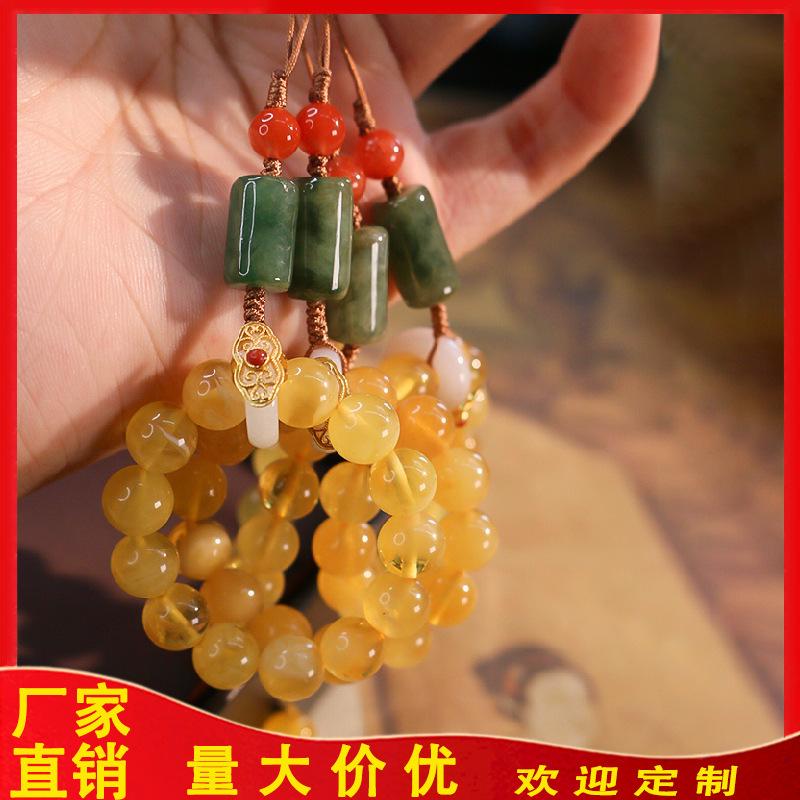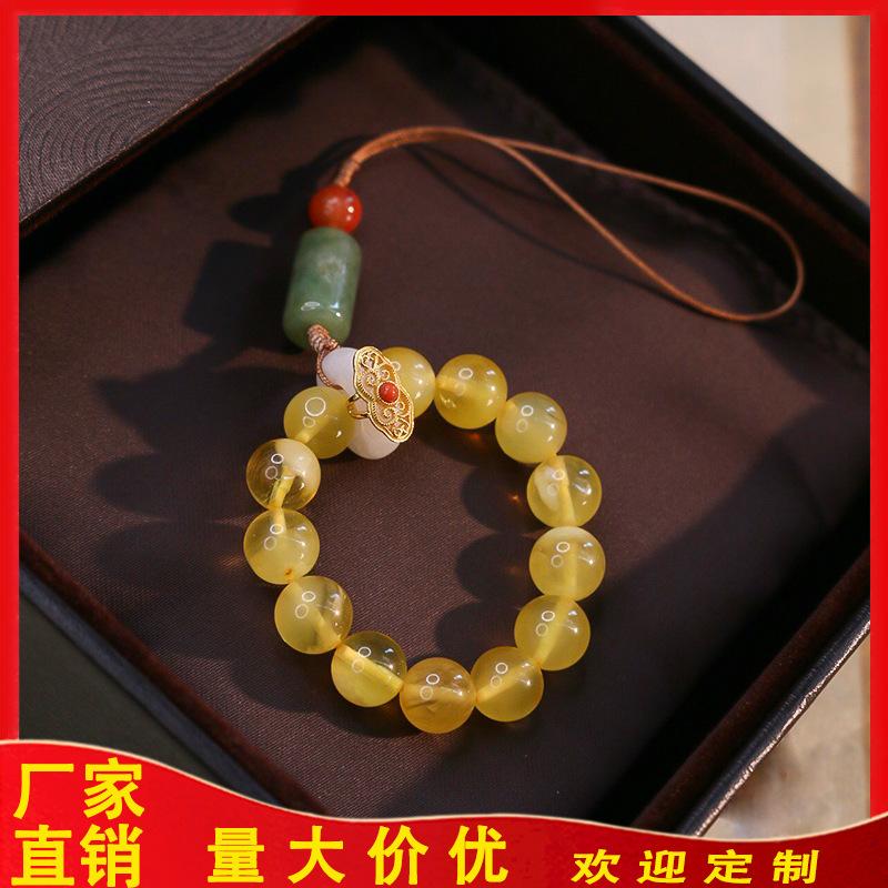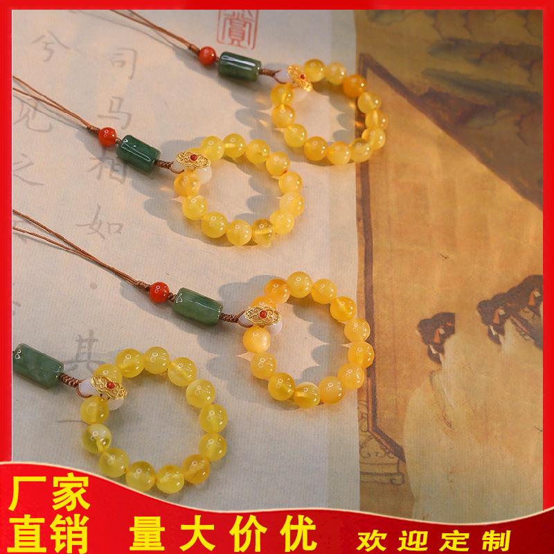 Adornos Colgantes de Cera de Abeja Torcida Dorada de Mano, Cordón para Cadena de Teléfono Móvil, Cuerda de Mano Pequeña Torcida a Mano, Cuenta de Buda Wen Play, Colgante de Llave, Estilo Antiguo para Mujeres