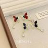 Pendientes de mariposa con diamantes de Dongdaemun, nuevos de Corea del Sur, estilo frío, versátiles, de alta calidad, con borlas y doble agujero en la oreja.
