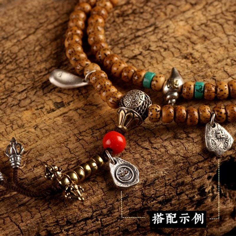 Pulsera de plata antigua tibetana de tamaño pequeño con carnero blanco, joyería, accesorios colgantes laterales, accesorios personalizados de semillas de Bodhi Baixiang, colgante vintage