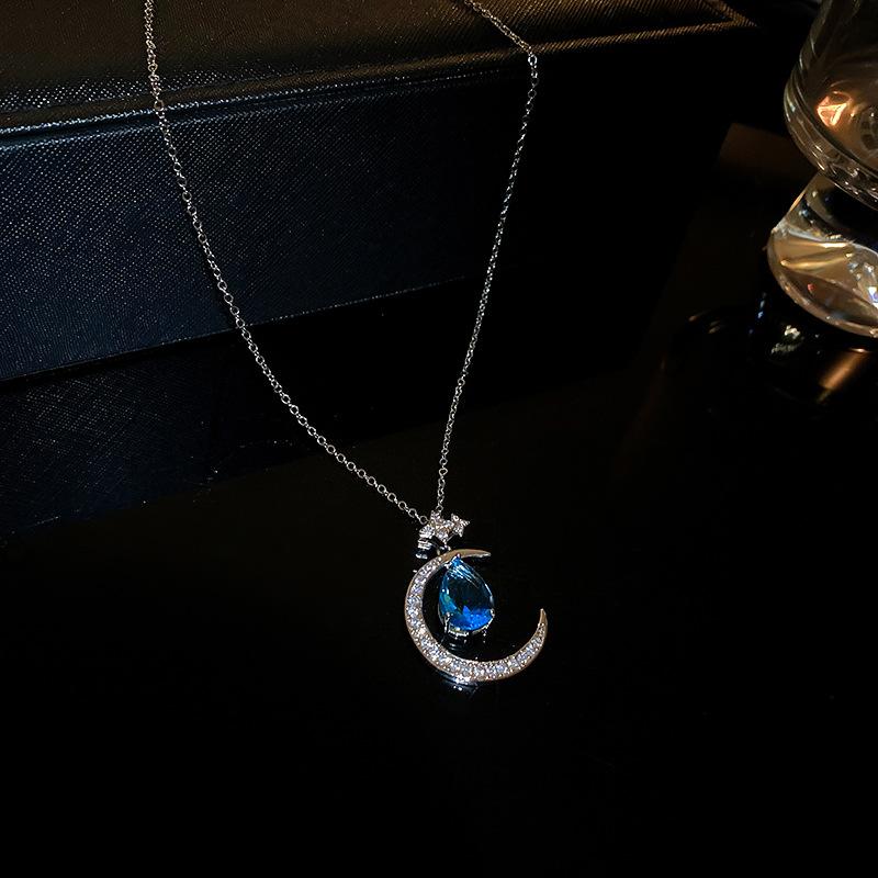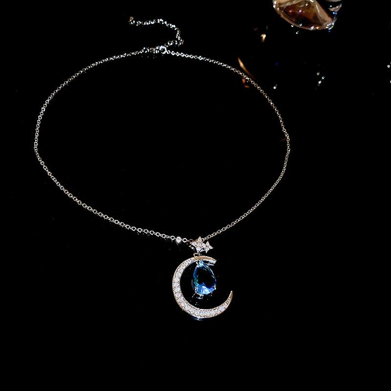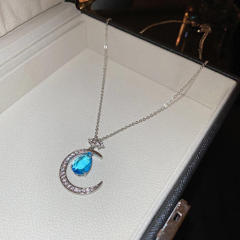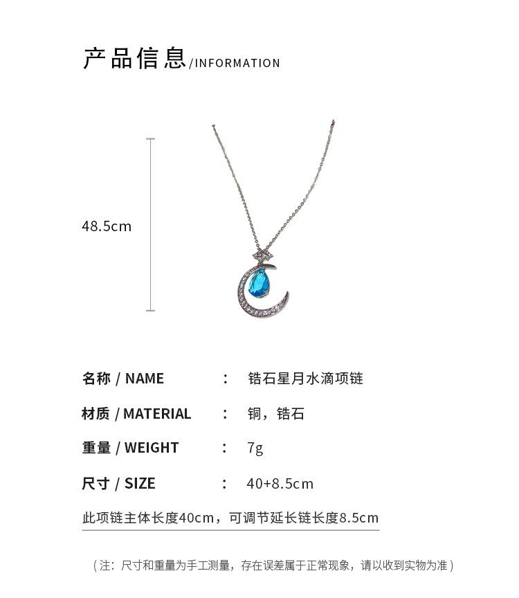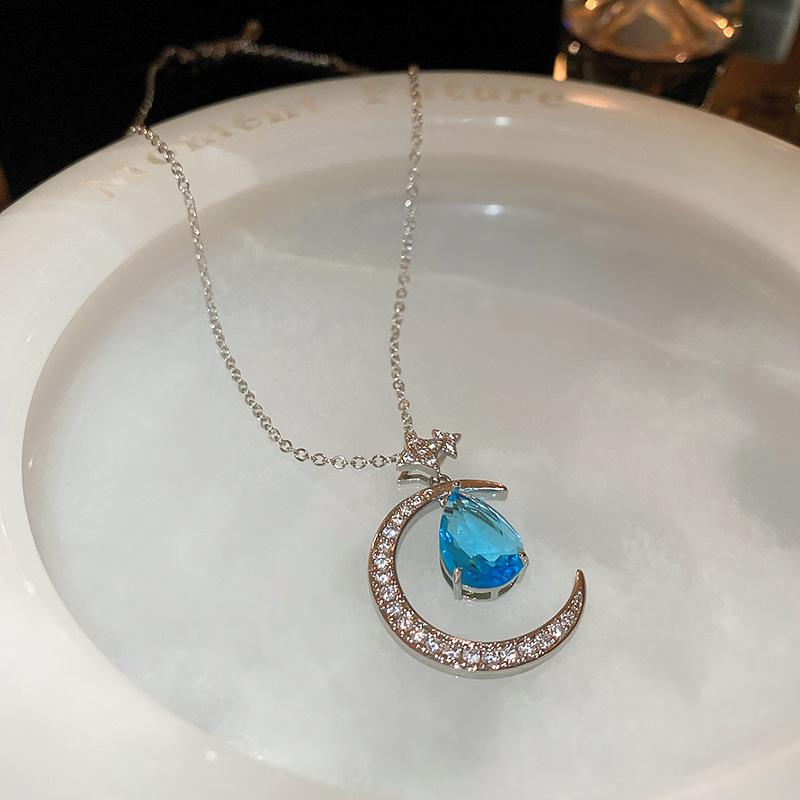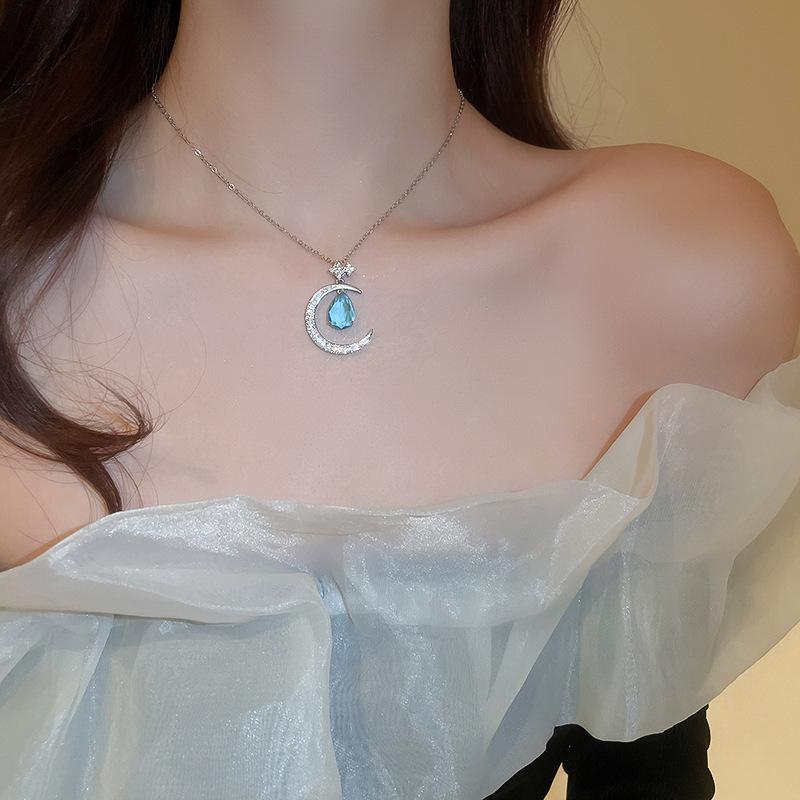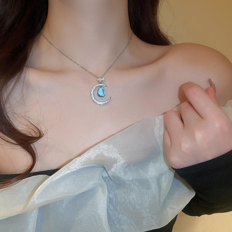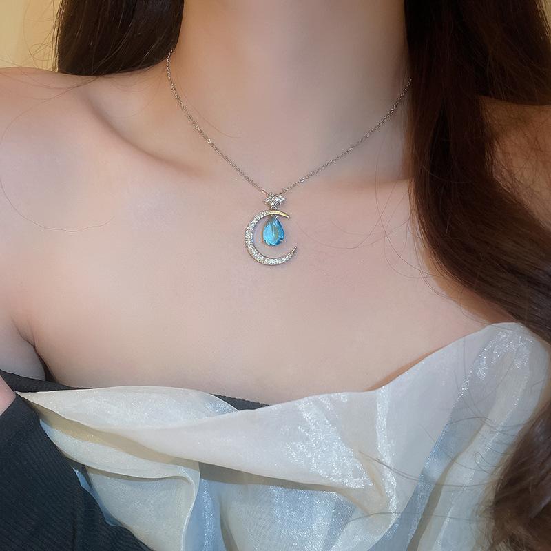 Collar de circón de alta calidad con forma de luna, estrella y gota de agua, estilo francés, sencillo, elegante, ligero y lujoso, con cadena de clavícula.