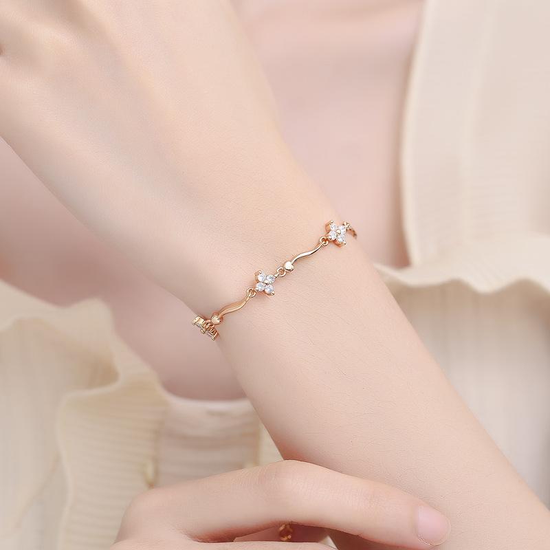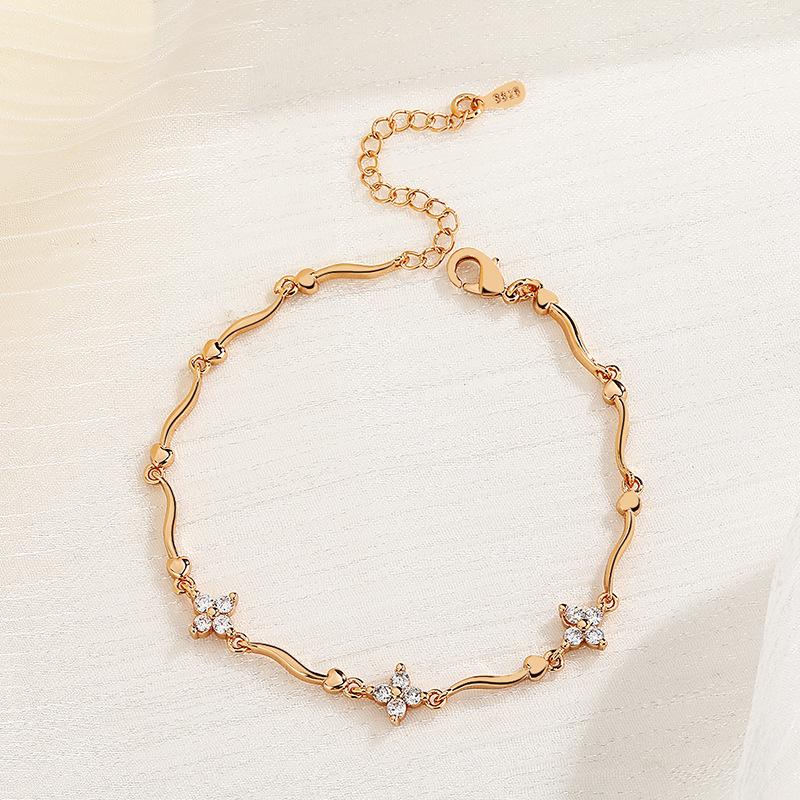 Nueva pulsera de trébol de la suerte color oro champán para mujer, pequeña, versátil, estilo de lujo ligero, simple, elegante, Mori, pulsera para amigas
