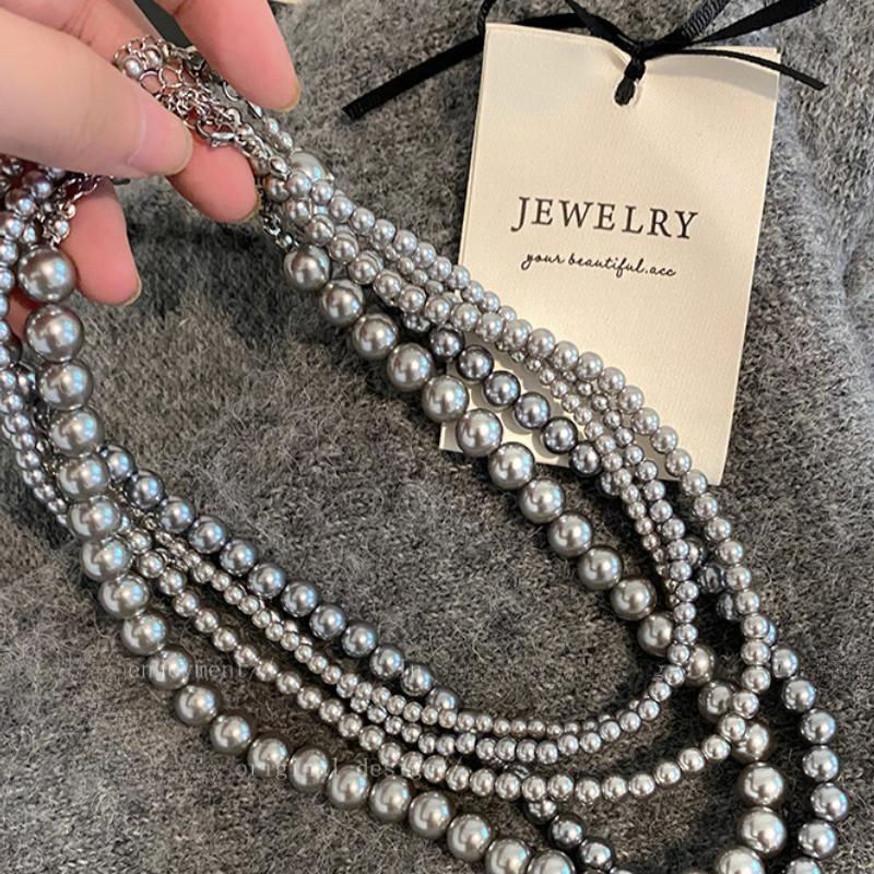 Collar de perlas grises de otoño e invierno para mujer, nuevo y popular diseño de nicho de lujo ligero, cadena de suéter de alta calidad, accesorios para collar