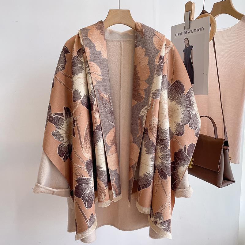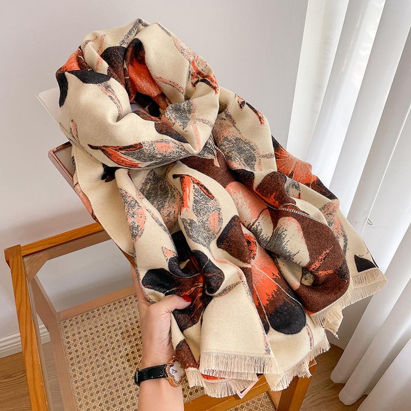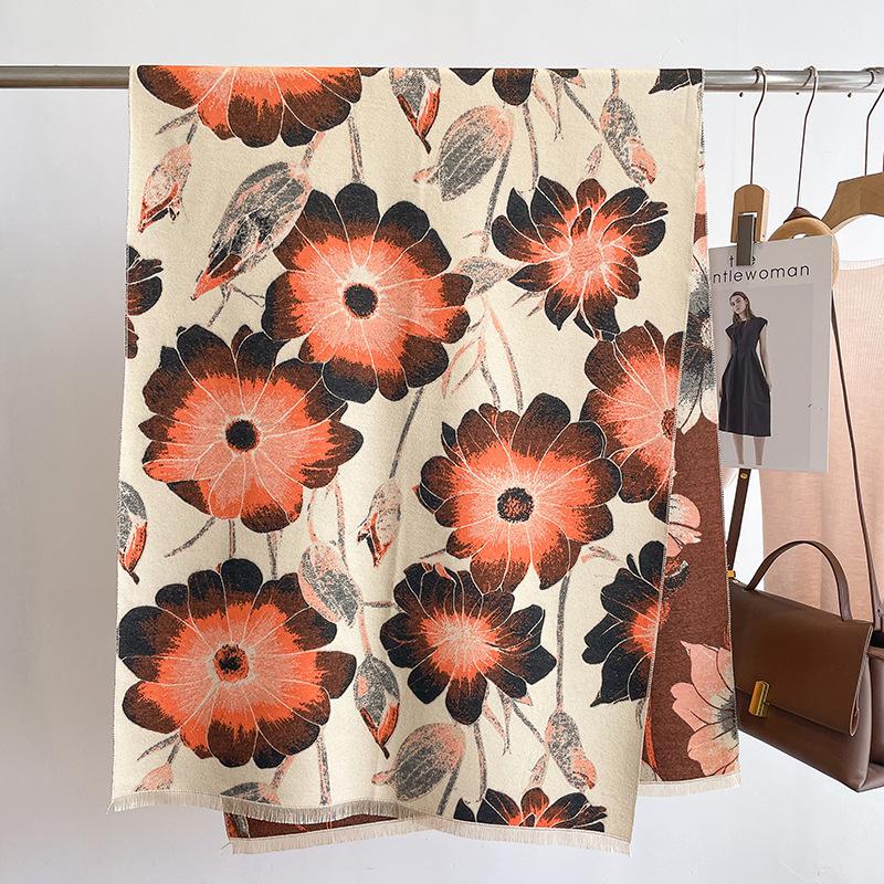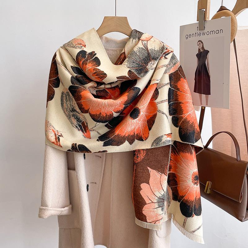 Bufanda de cachemira estampada de estilo étnico para mujer, chal de aire acondicionado cálido y grueso de doble cara, moda de otoño e invierno, 2023