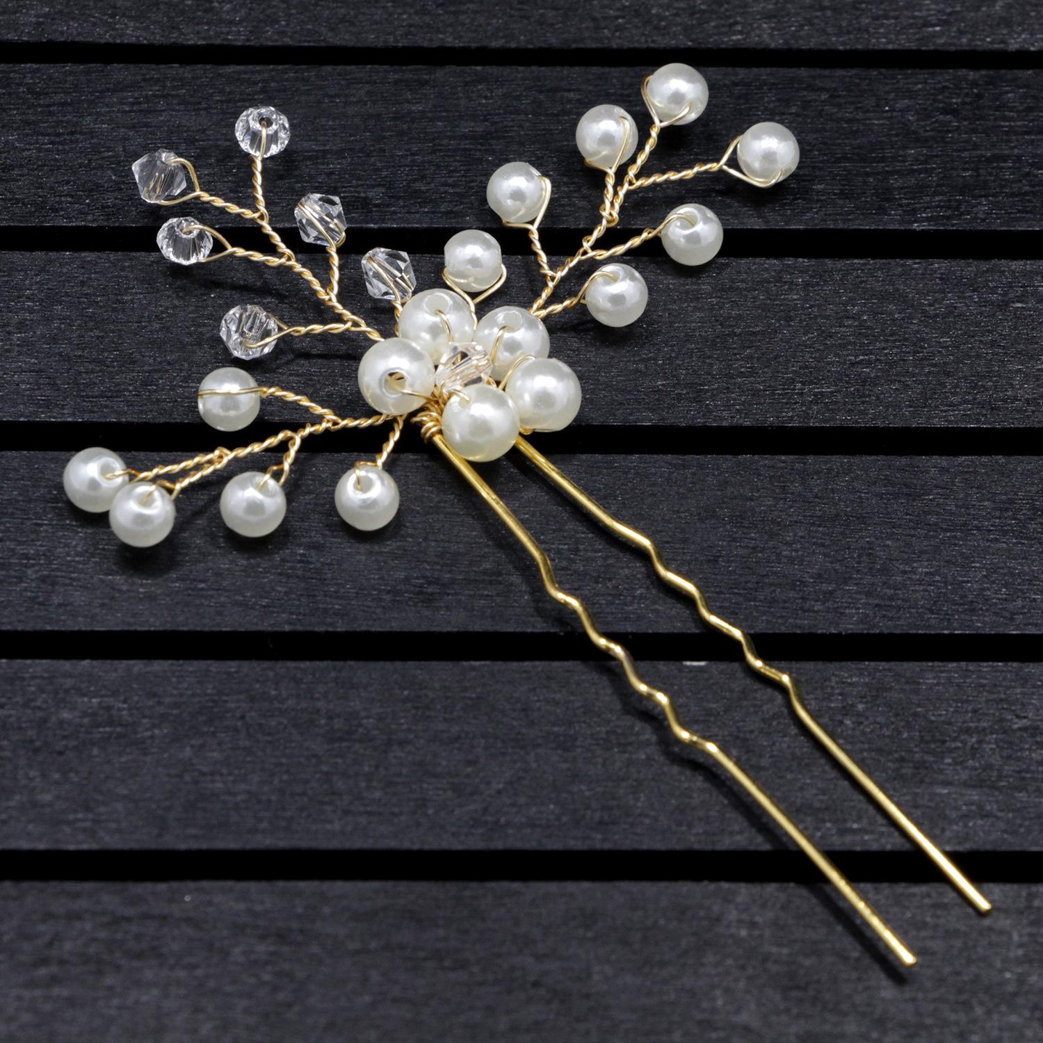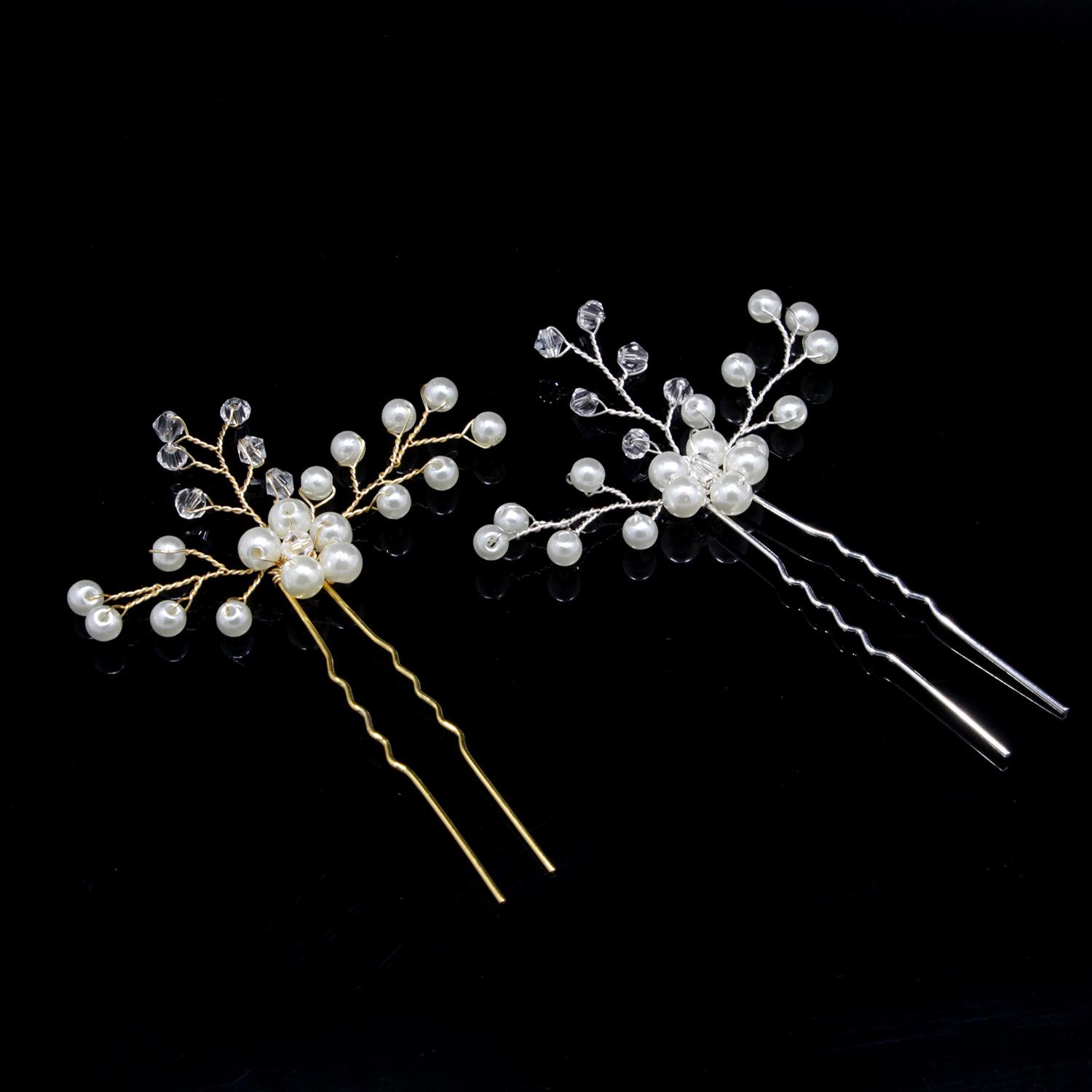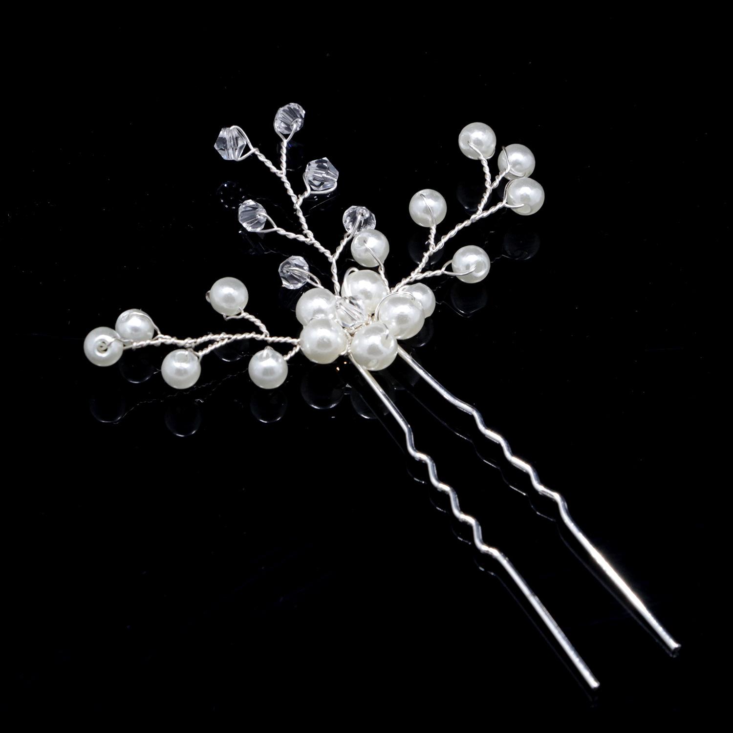 Horquilla hecha a mano transfronteriza con flor de diamante y perla en forma de U, tocado, accesorios de boda para novias, accesorios para el cabello