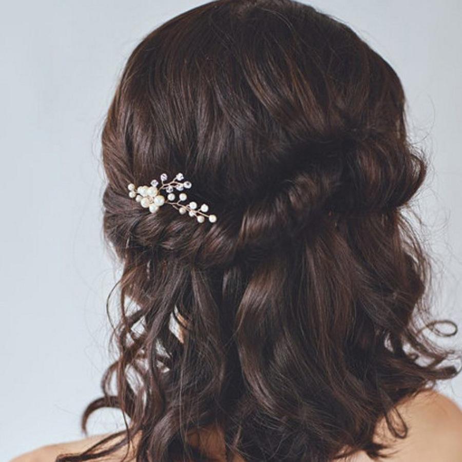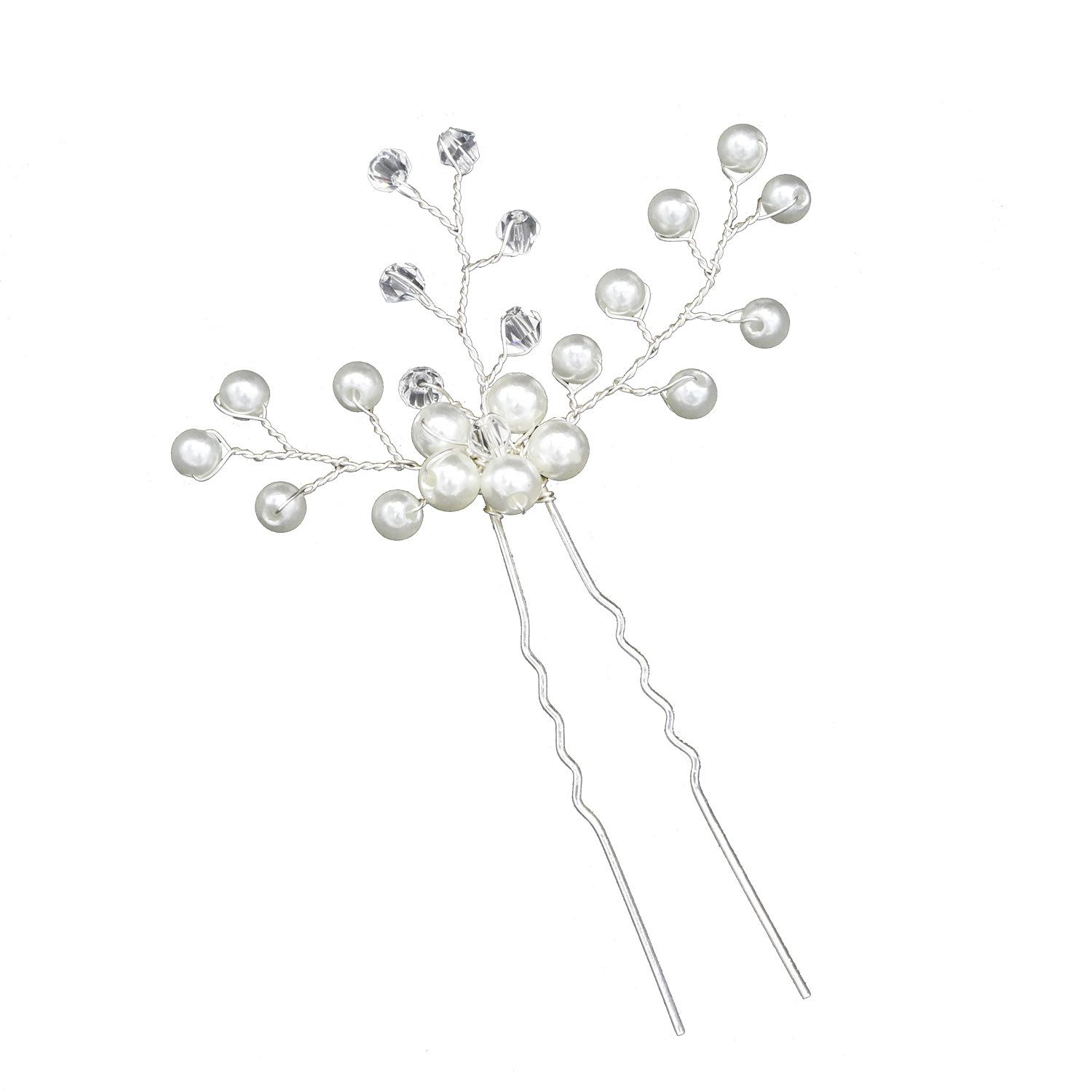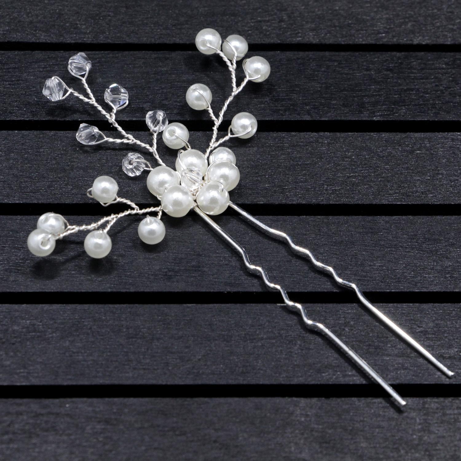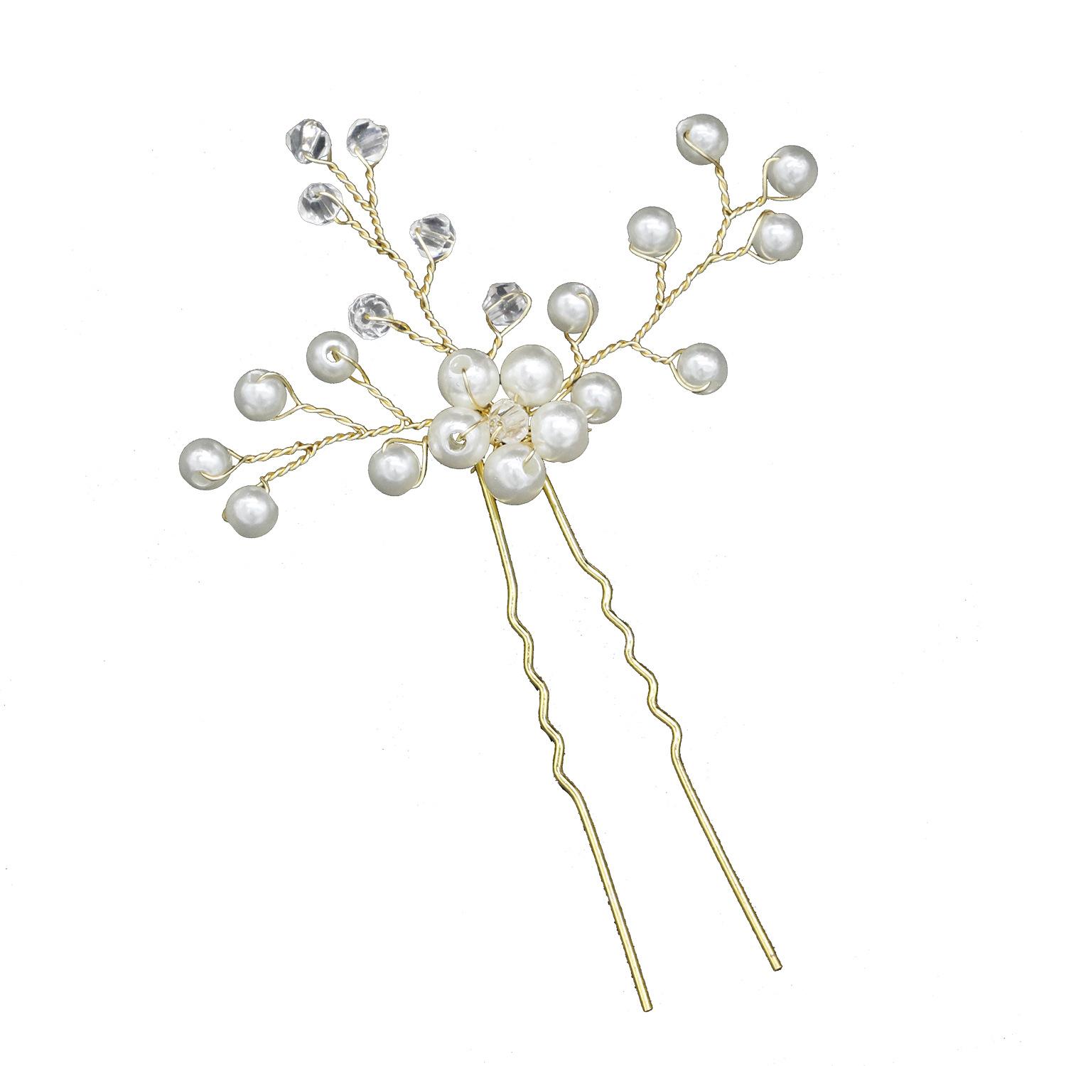 Horquilla hecha a mano transfronteriza con flor de diamante y perla en forma de U, tocado, accesorios de boda para novias, accesorios para el cabello