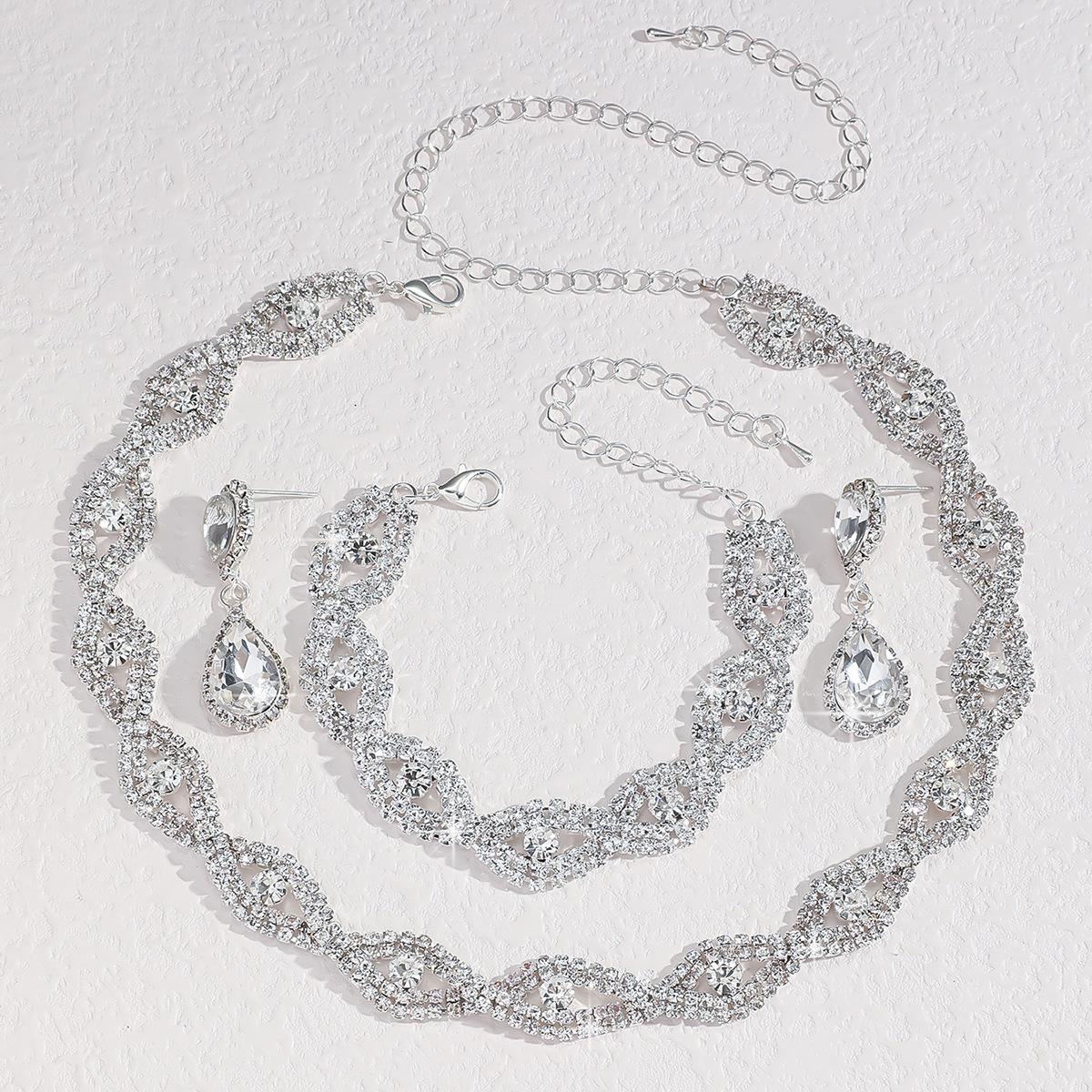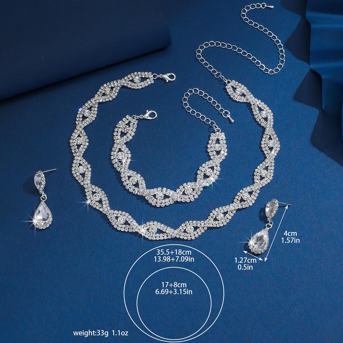 Joyería de novia europea y americana, nuevo collar, pendientes, pulsera, tres piezas, elegante vestido de noche de mujer, accesorios que combinan con todo.