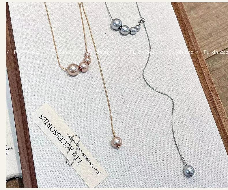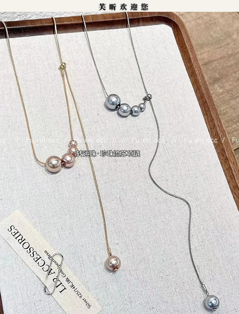Collar de Borla de la Suerte Nicho de Lujo Ligero Y Cadena de Clavícula de Perlas con Forma Dorada y Plateada Lujo Ligero Cadena para Suéter de Alta Gama al Mayoreo