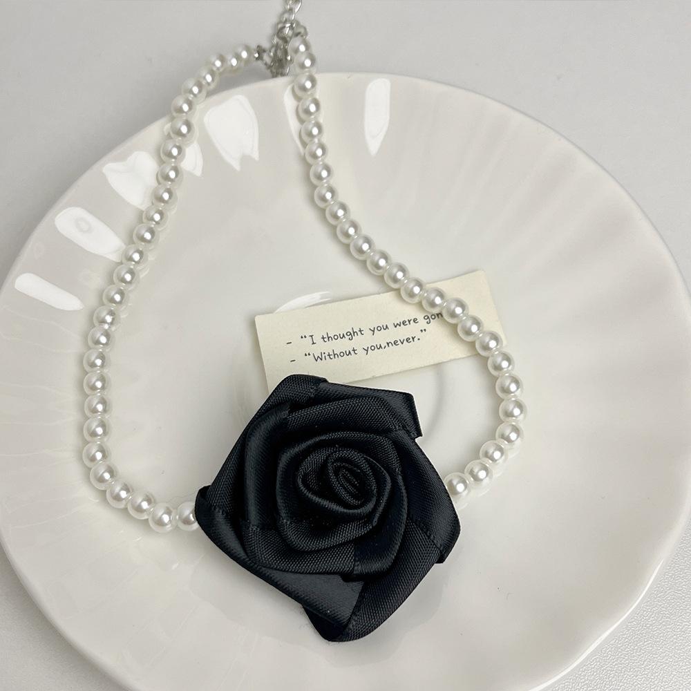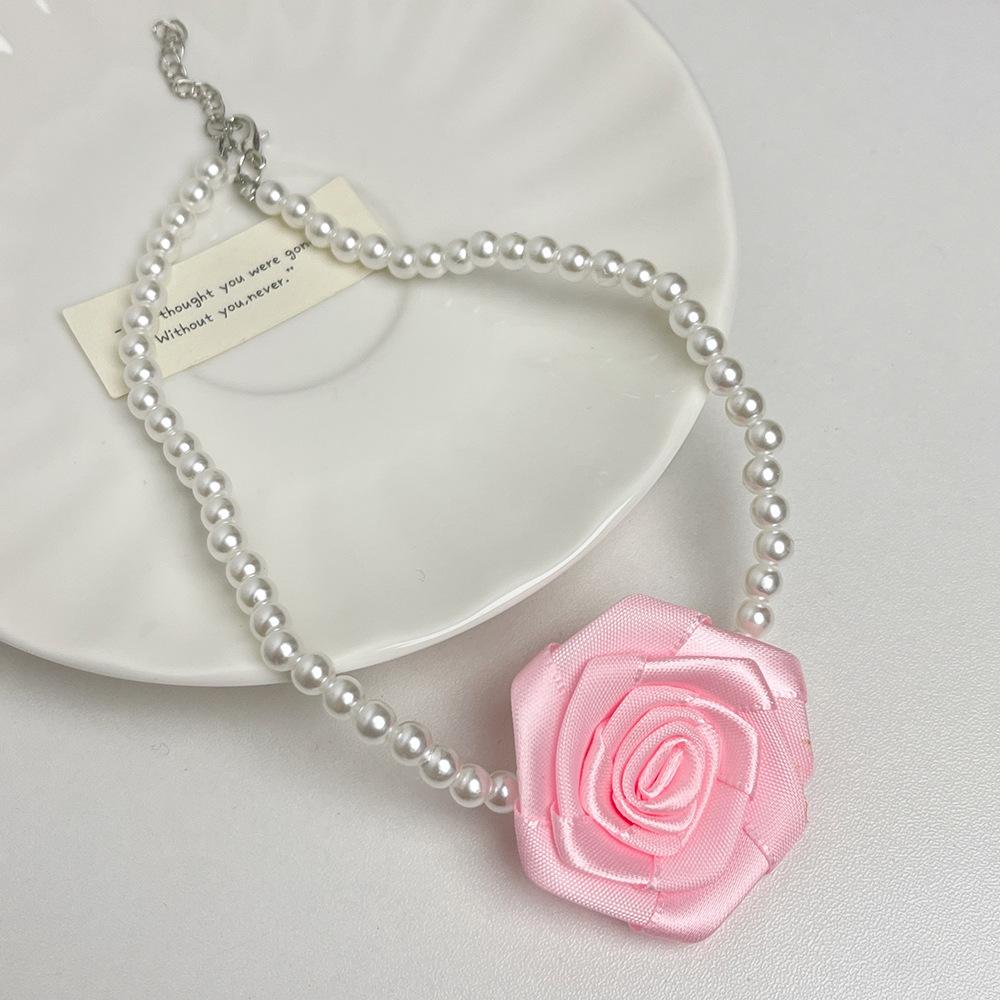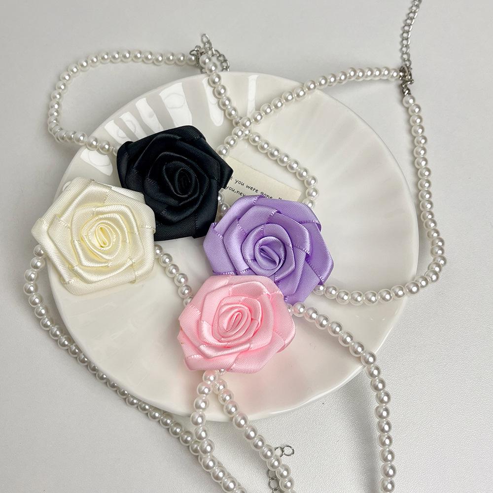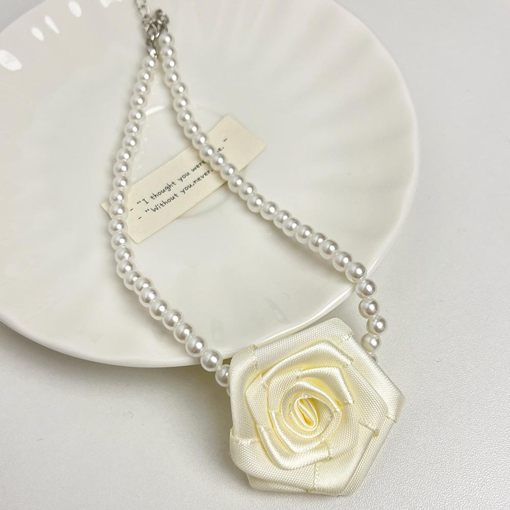 Collar de perlas con flor de tela diseño de temperamento francés cadena de clavícula con cuentas moda simple nuevo collar venta al por mayor