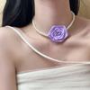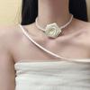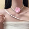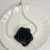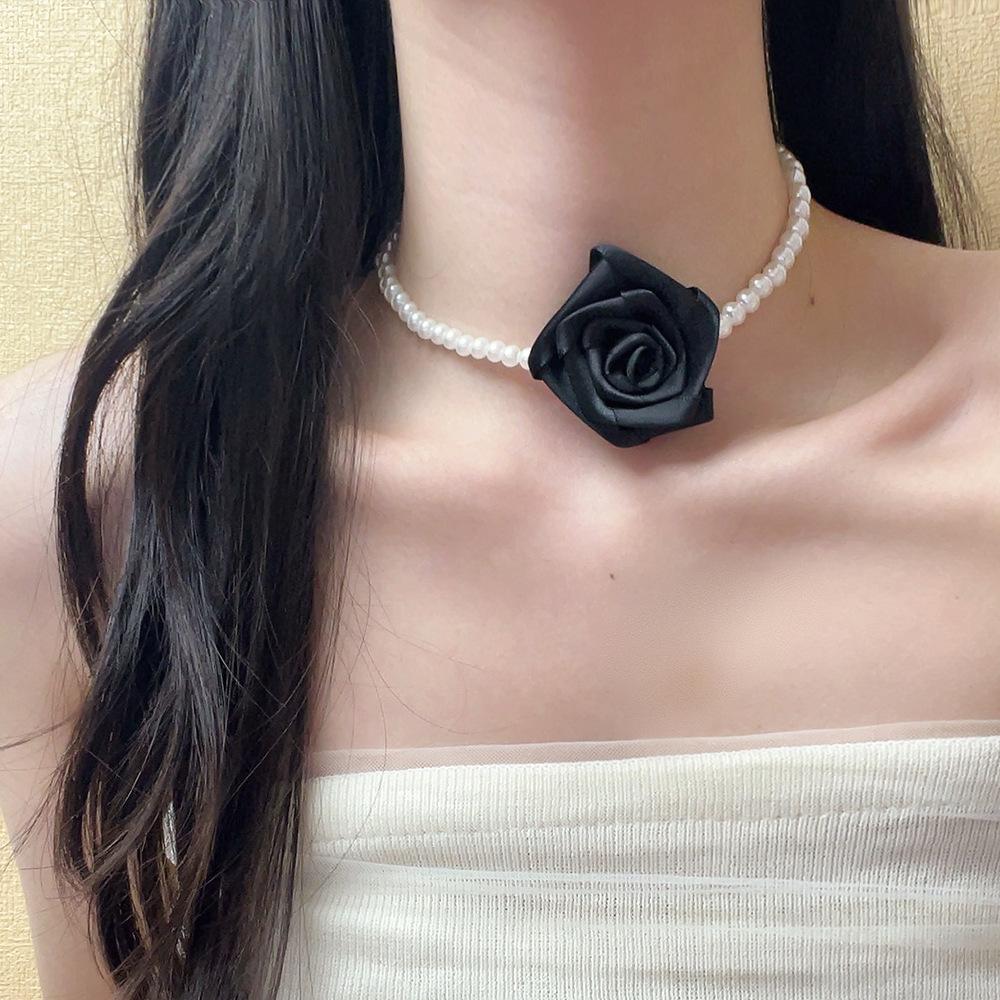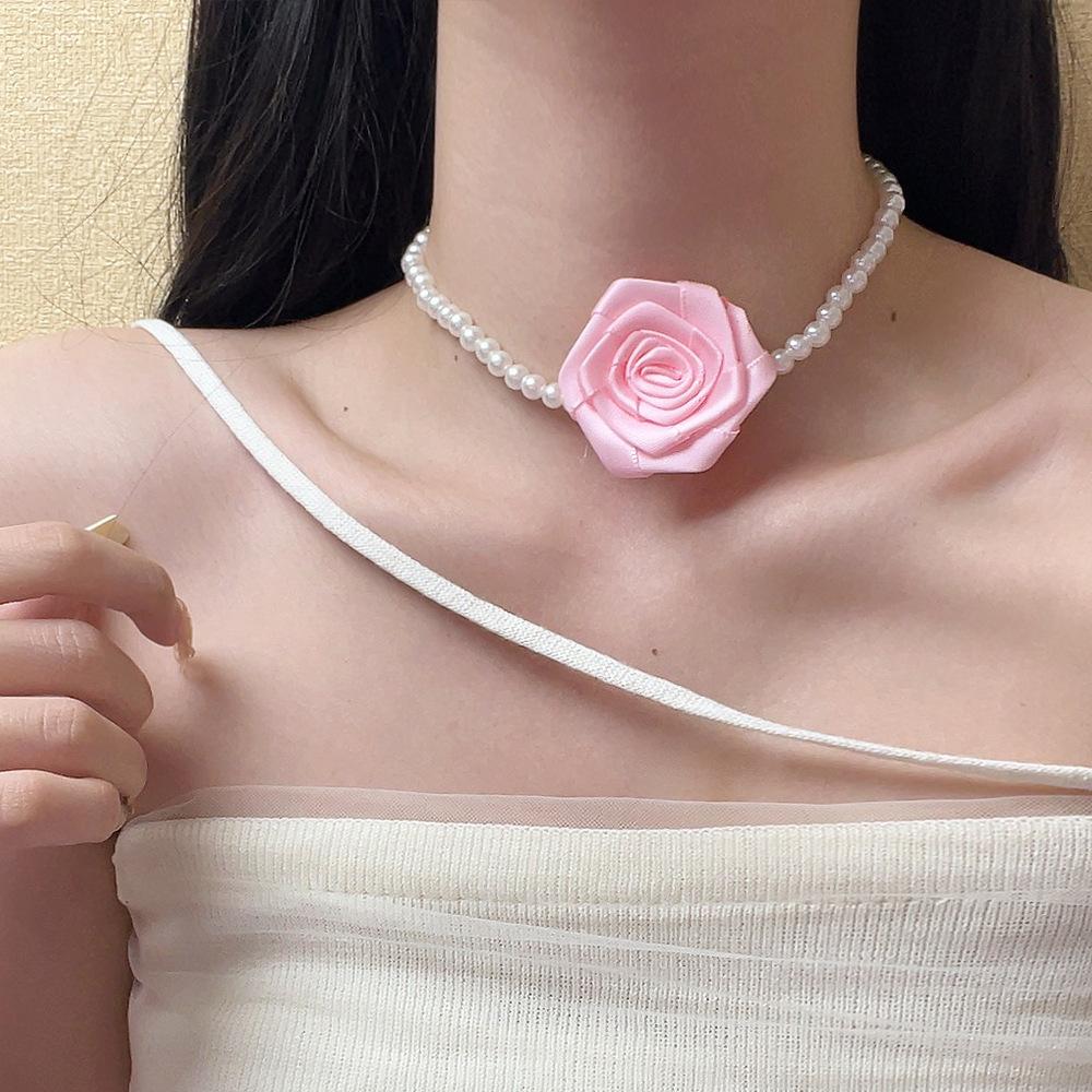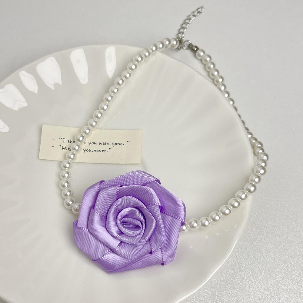 Collar de perlas con flor de tela diseño de temperamento francés cadena de clavícula con cuentas moda simple nuevo collar venta al por mayor
