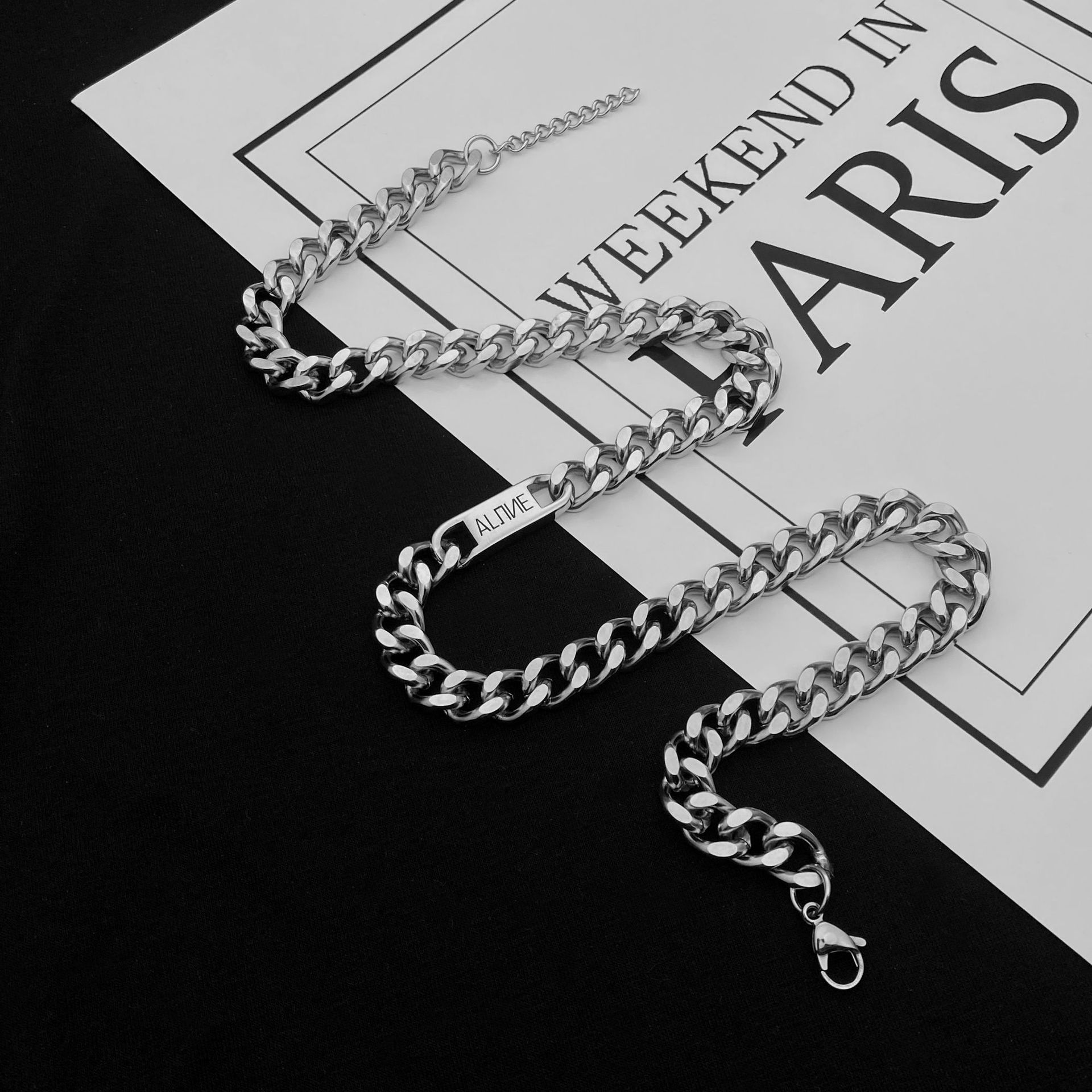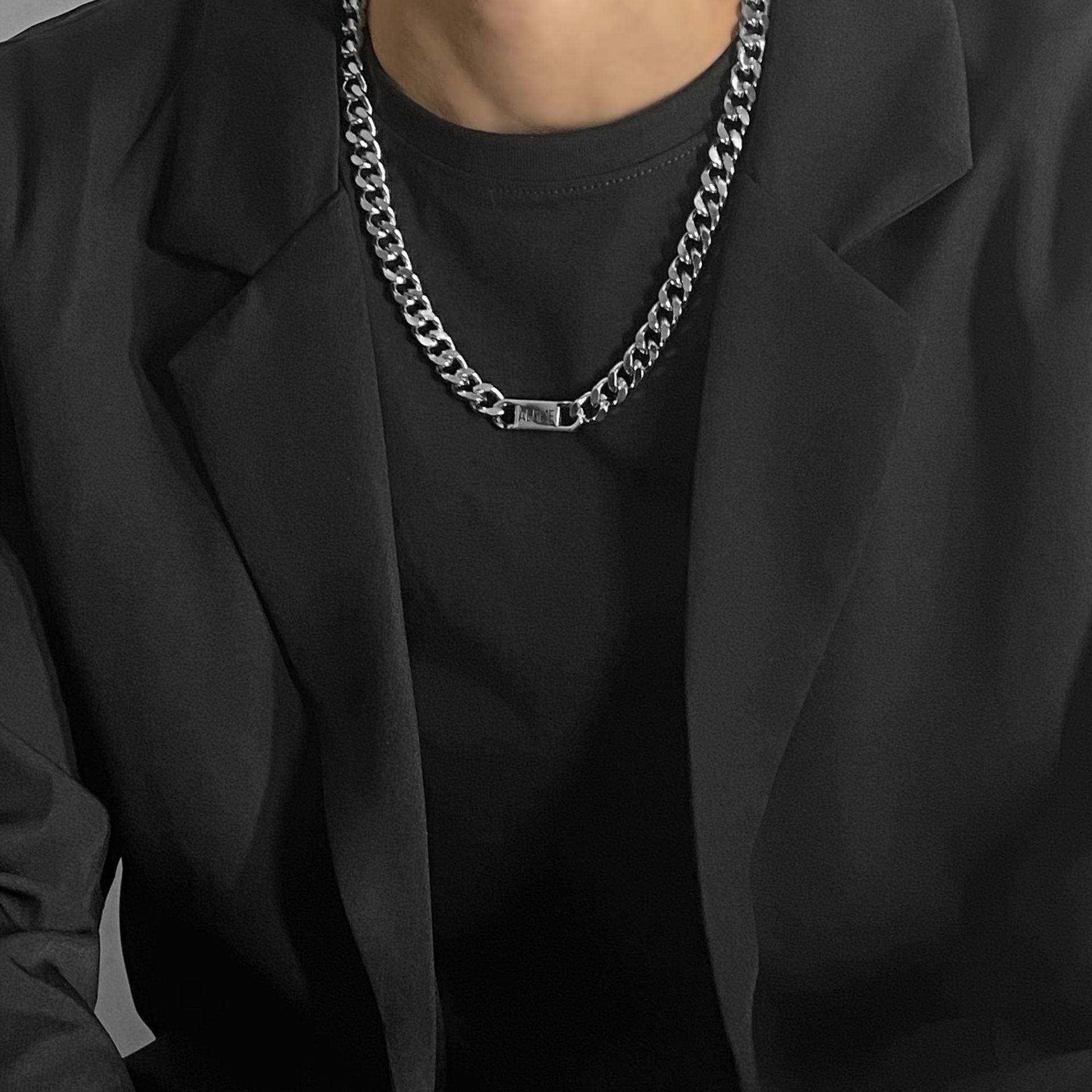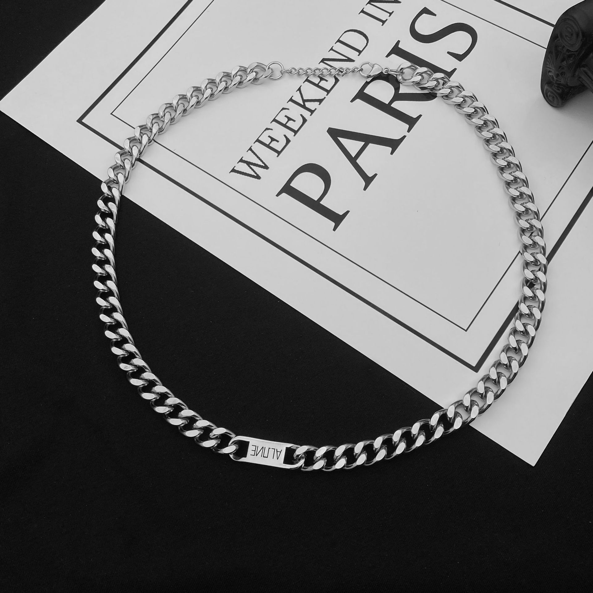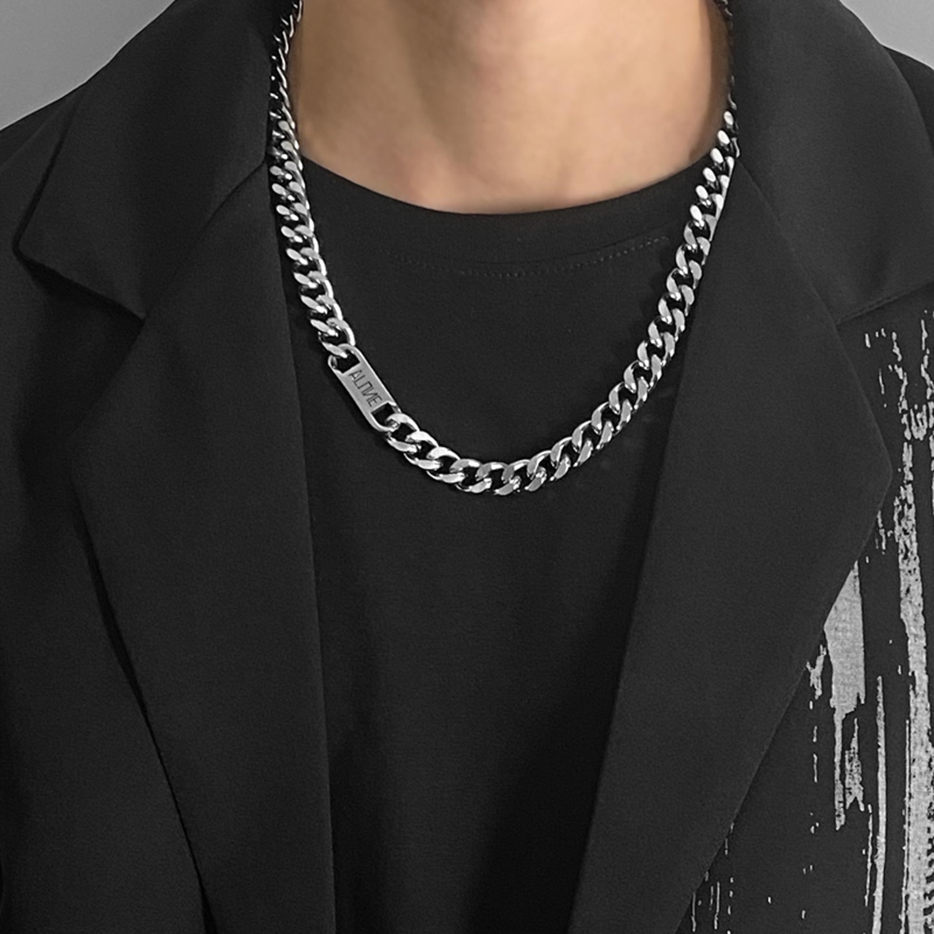 Cadena de acero de titanio hip hop de moda para hombre europeo y americano, personalidad simple, callejera, cadena gruesa, accesorios, letra, cuadrado, marca, collar cubano
