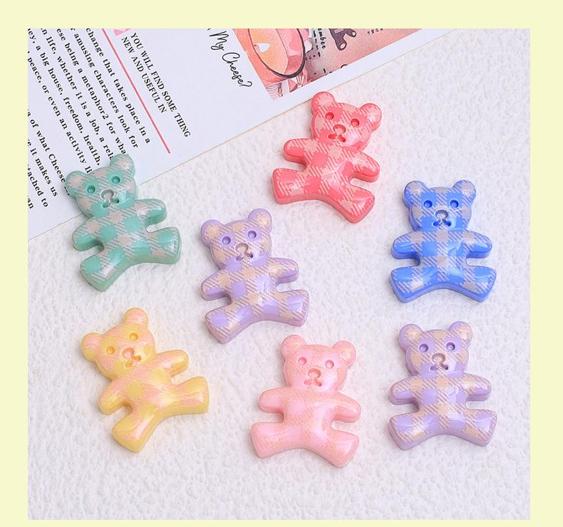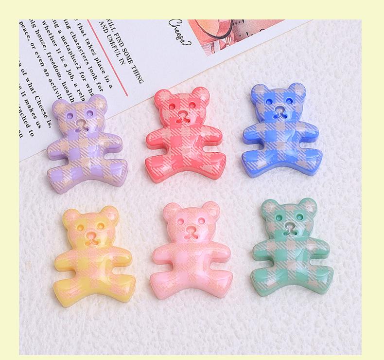 Oso de Cuadros de Dibujos Animados Lindo Hecho a Mano DIY Accesorios de Joyería Pegamento Crema Accesorios de Resina Agujero Material para Hebilla de Zapato