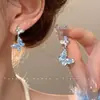 Pendientes de mariposa azul con aguja de plata S925 para mujer, elegantes, con un diseño moderno y elegante, de estilo coreano, con el mismo diseño de celebridades de Internet.