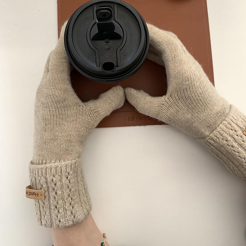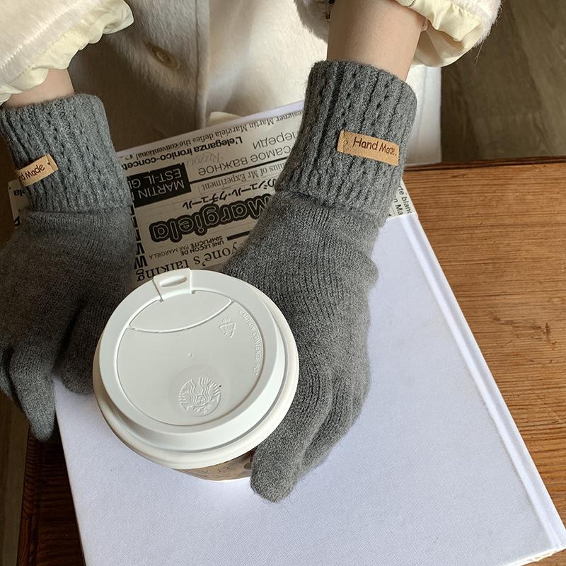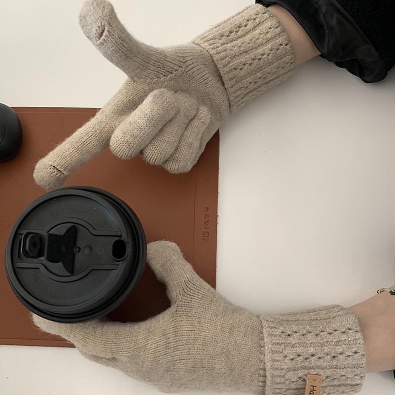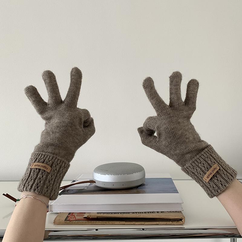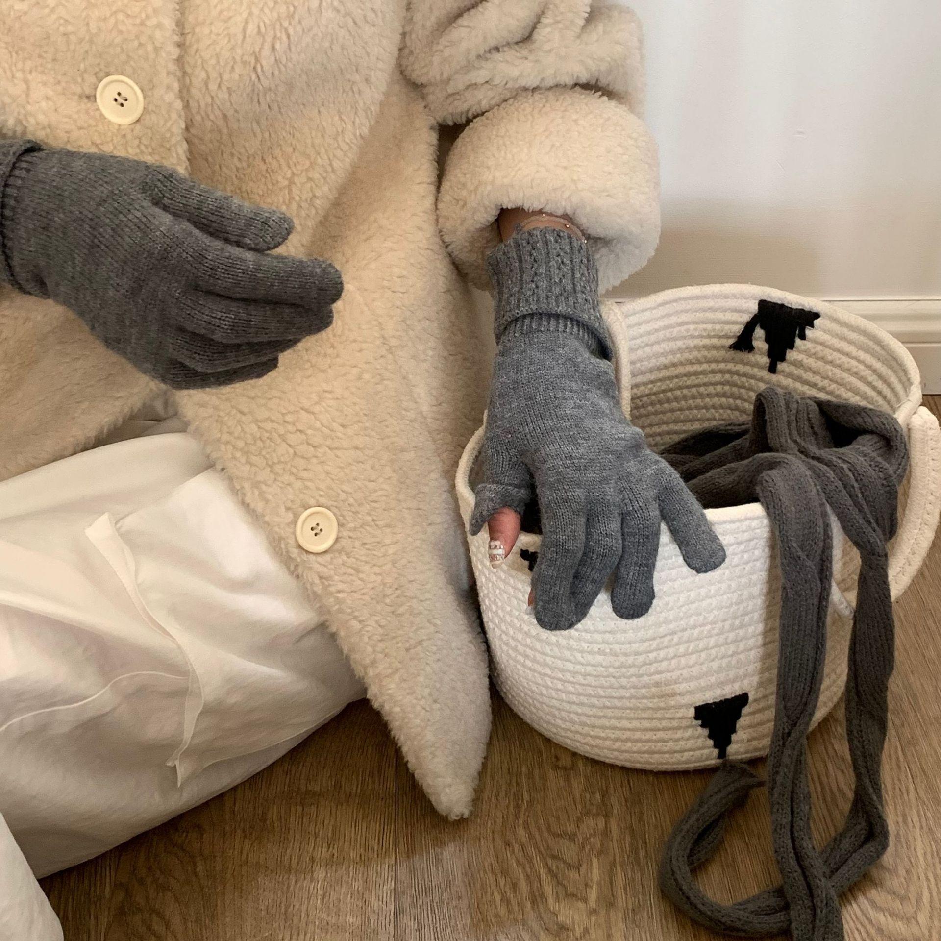 Guantes de Punto de Cinco Dedos Estilo Coreano para Mujer, Estilo Japonés y Coreano de Lana sin Dedos con Dedos Separados para Pantalla Táctil, Guantes de Lana Cálidos de Alta Calidad
