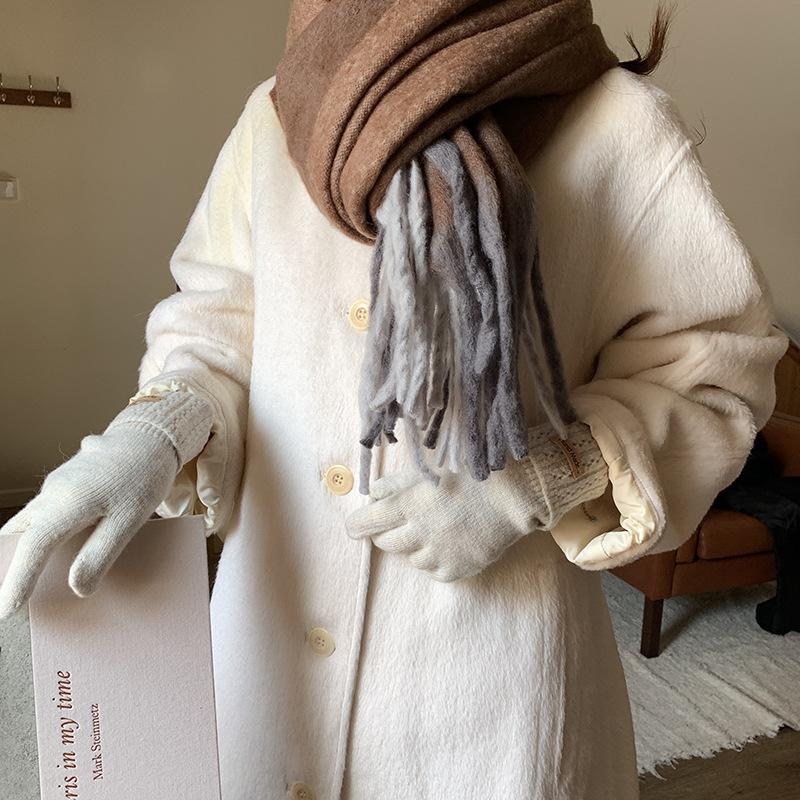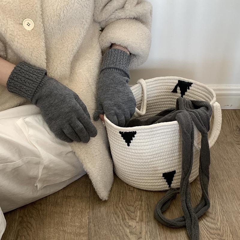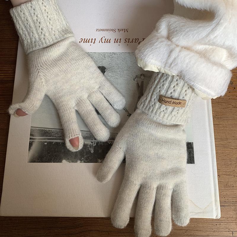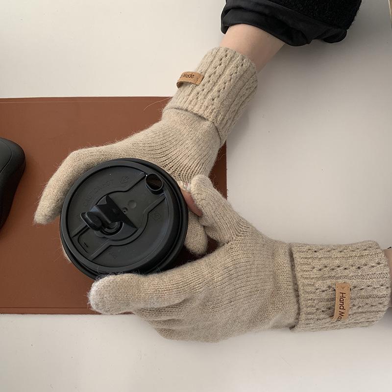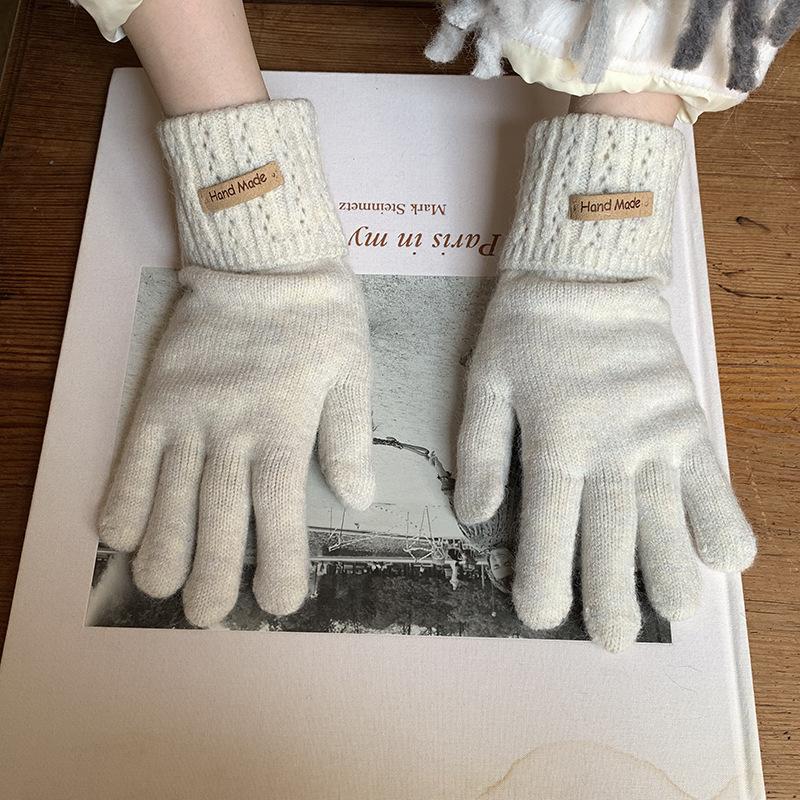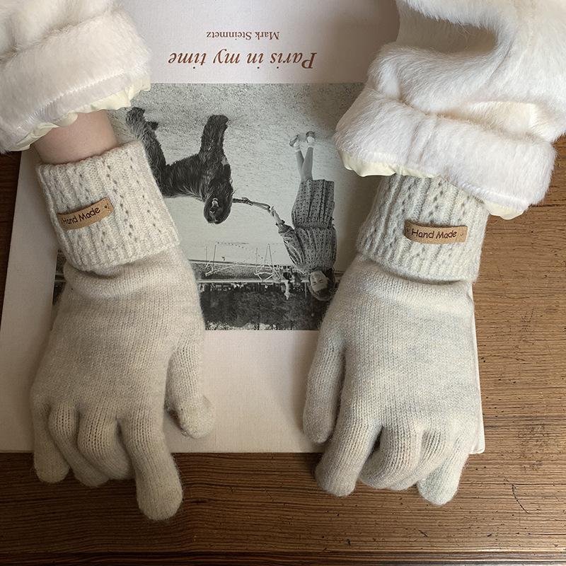 Guantes de Punto de Cinco Dedos Estilo Coreano para Mujer, Estilo Japonés y Coreano de Lana sin Dedos con Dedos Separados para Pantalla Táctil, Guantes de Lana Cálidos de Alta Calidad