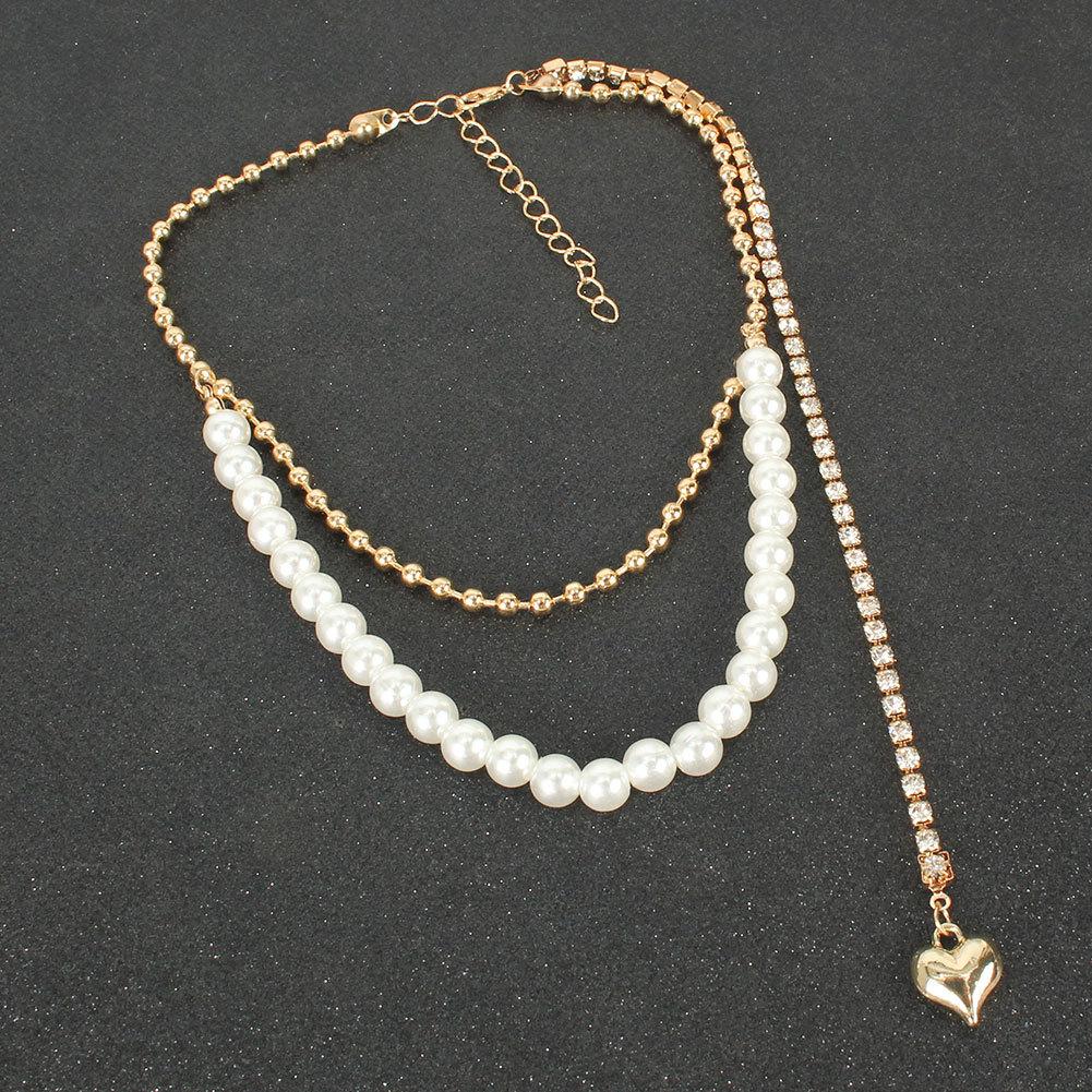 Collar de perlas con colgante de corazón de melocotón de aleación creativa europea y americana para mujer, fotografía callejera de moda transfronteriza 16110