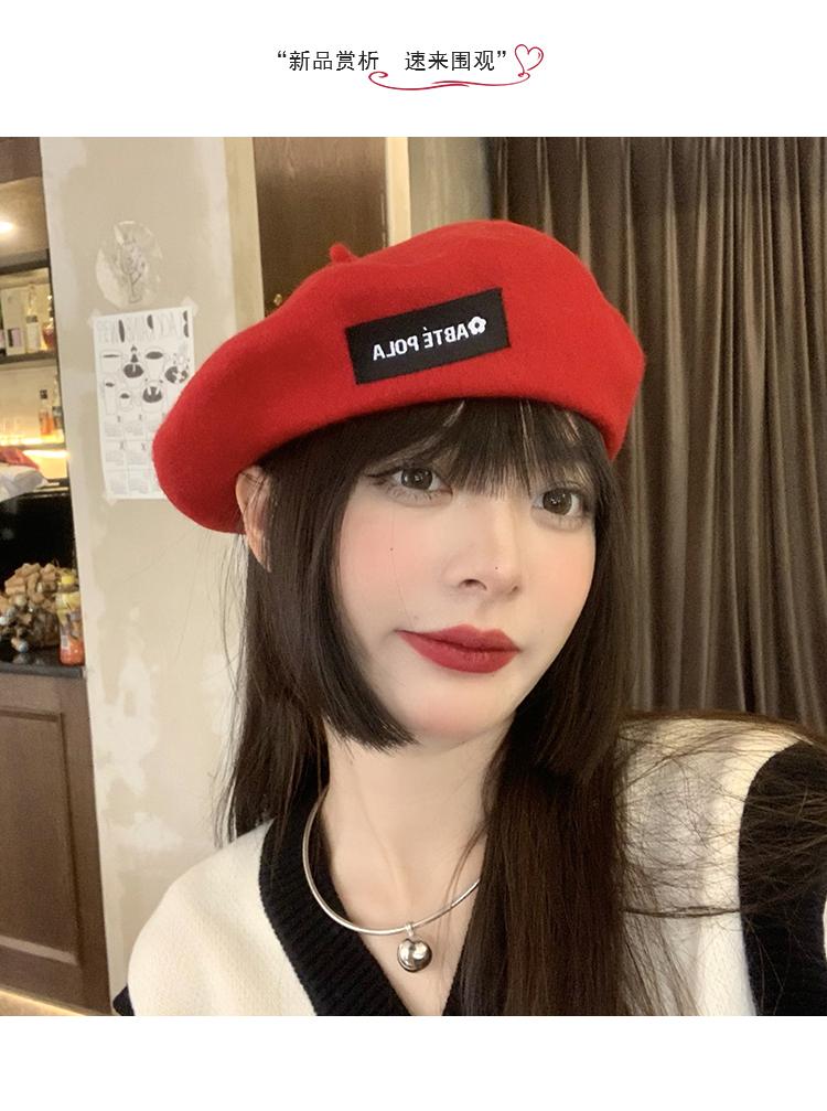 Boina de lana retro para mujer, otoño e invierno, estilo japonés, gorro de pintor de lana británico, gorro cálido de estilo coreano para mujer.
