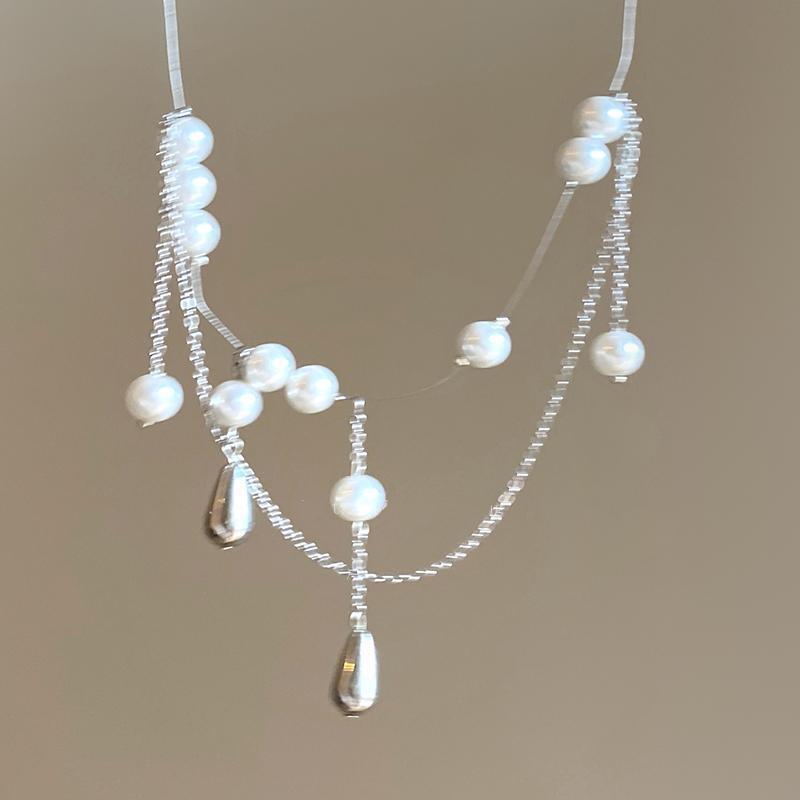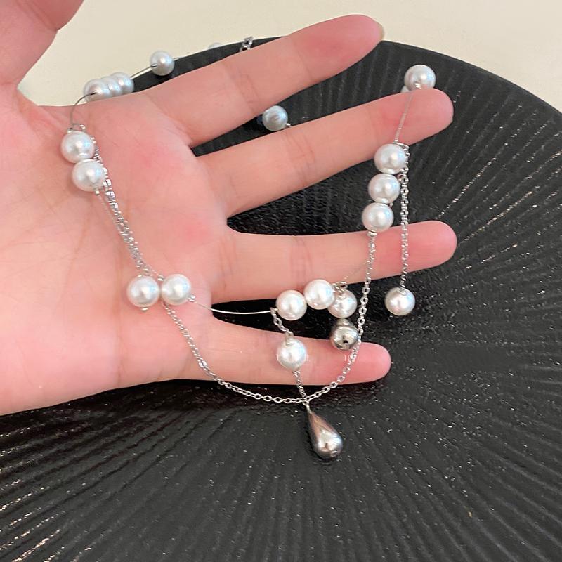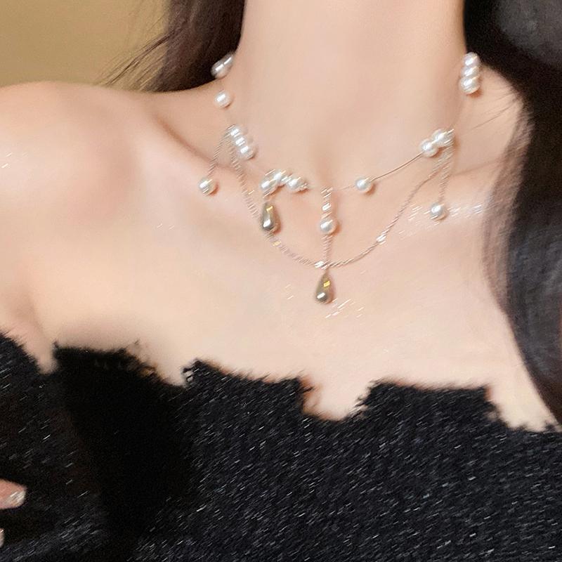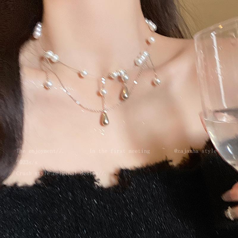 Collar de borla de perlas de doble capa para mujer, diseño de nicho de lujo ligero, accesorios de alta gama, elegante cadena de clavícula exquisita de celebridades de Internet