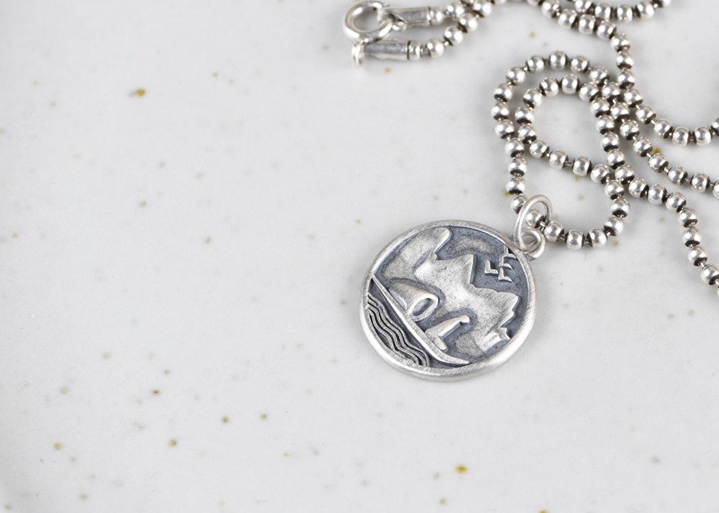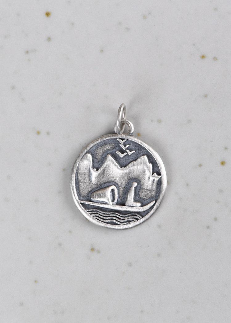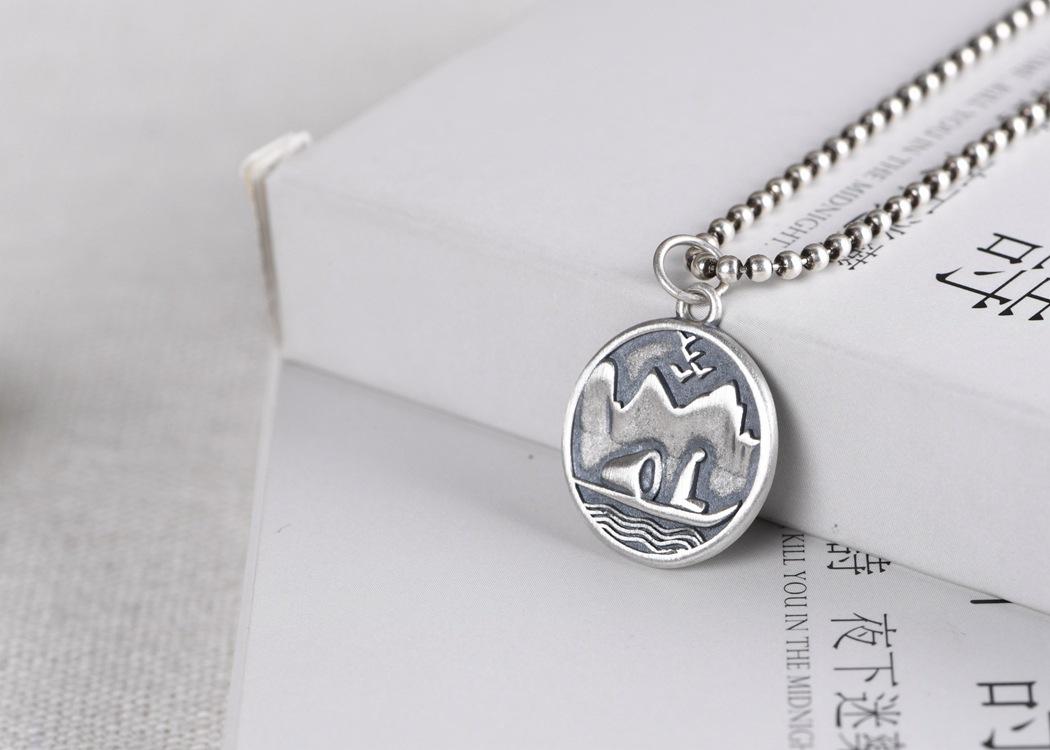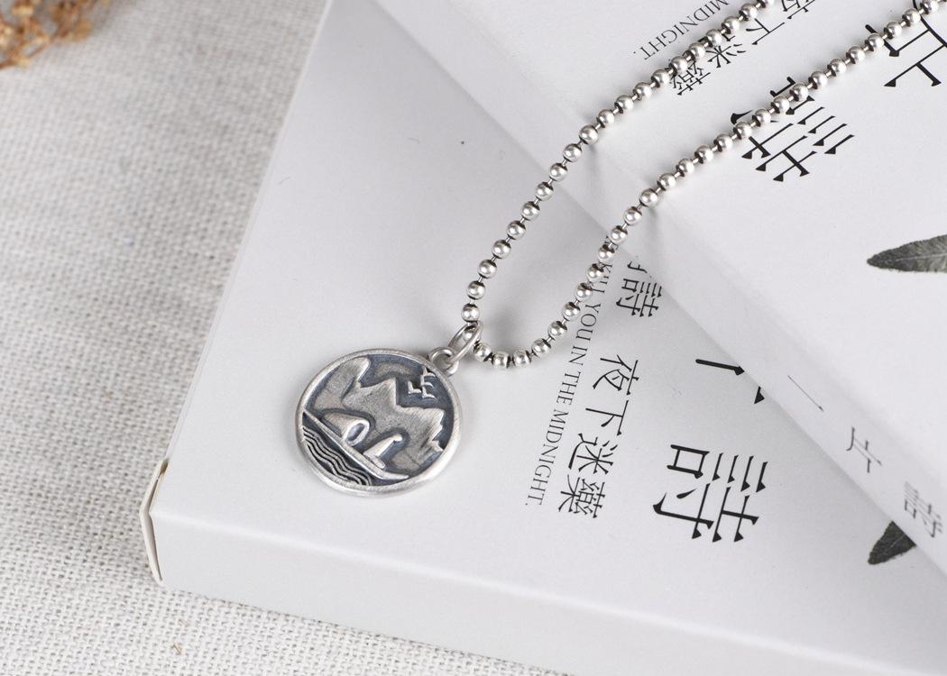 Colgante de Plata S925 Rey del Ciervo Dorado Retro Simple Literario Paisaje Medalla de Plata Colgante Yiwei Cruzando el Río