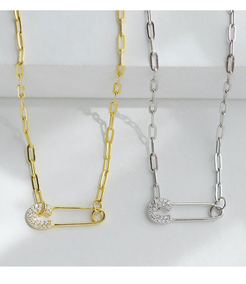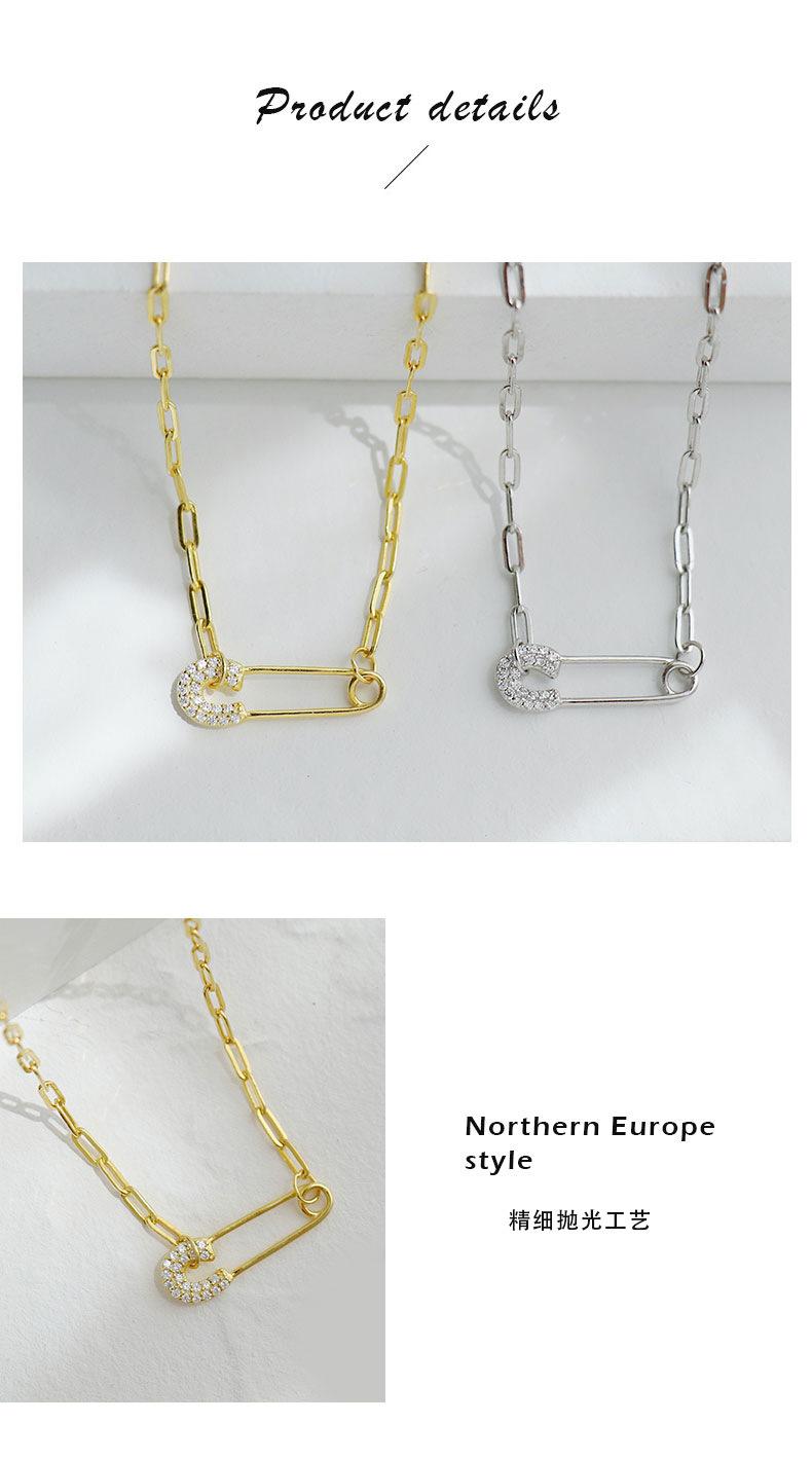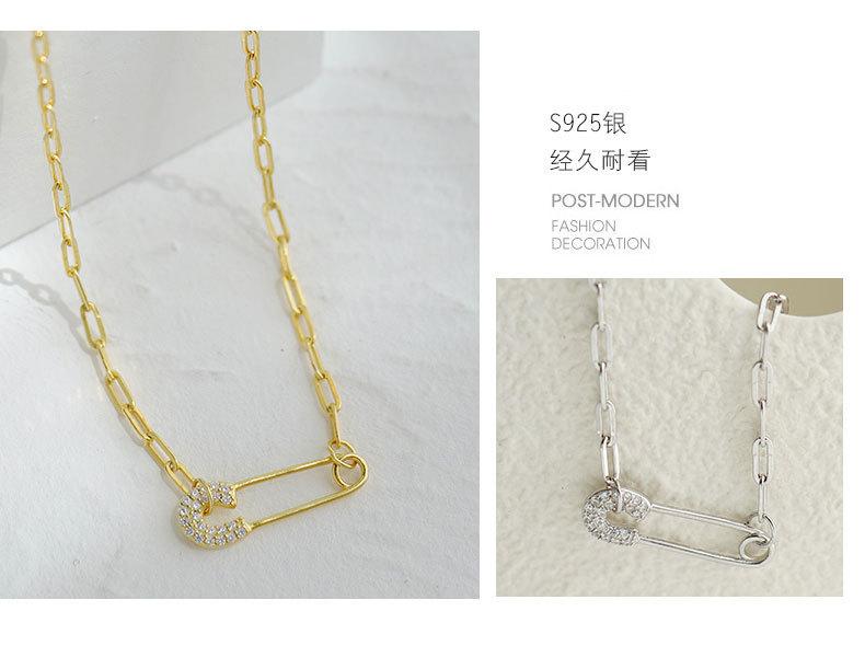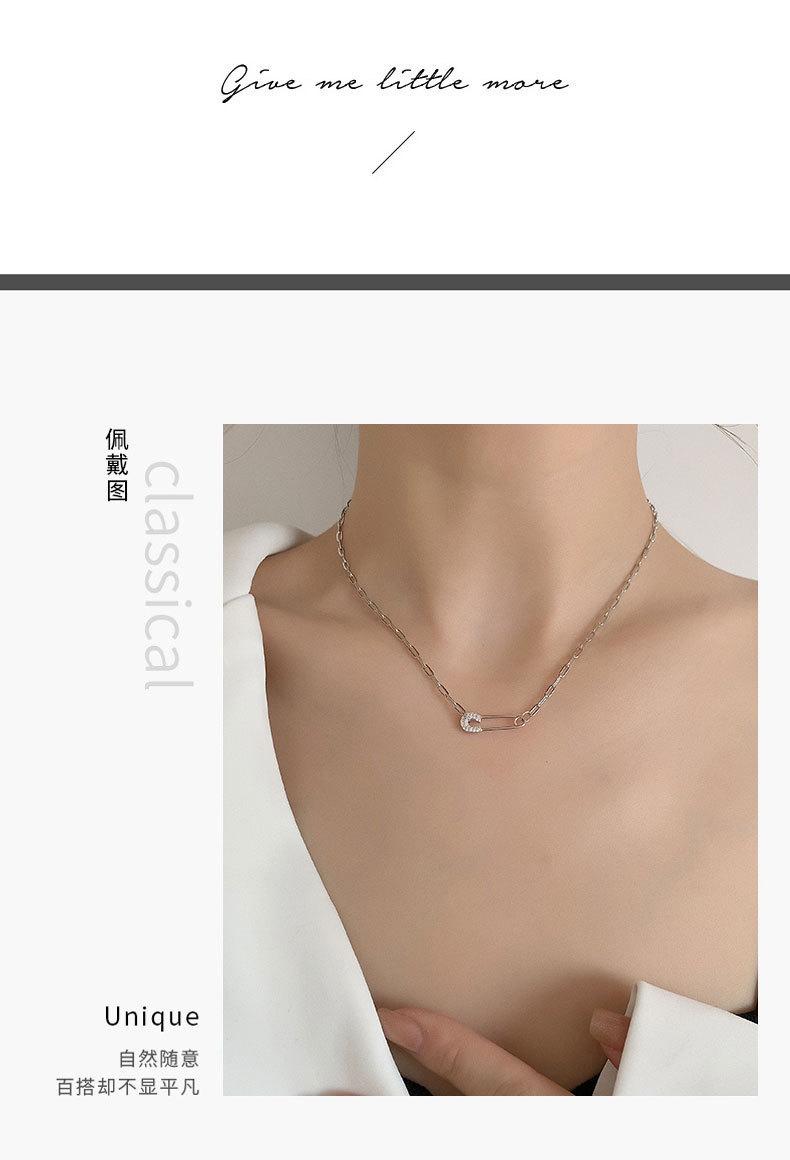 Collar de estilo coreano Shijia con forma de alfiler, diseño de nicho para mujer, cadena de clavícula de plata esterlina simple, collar Cyber Celebrant que combina con todo.