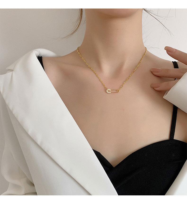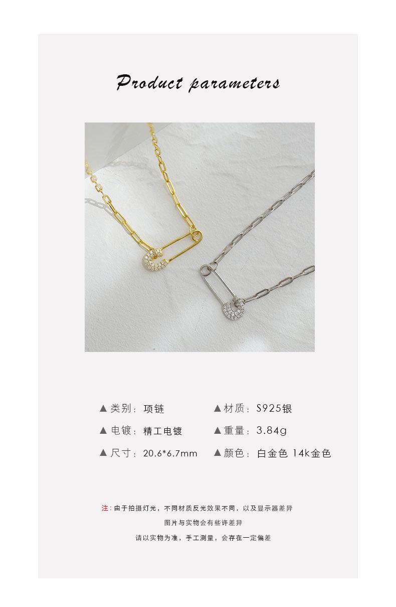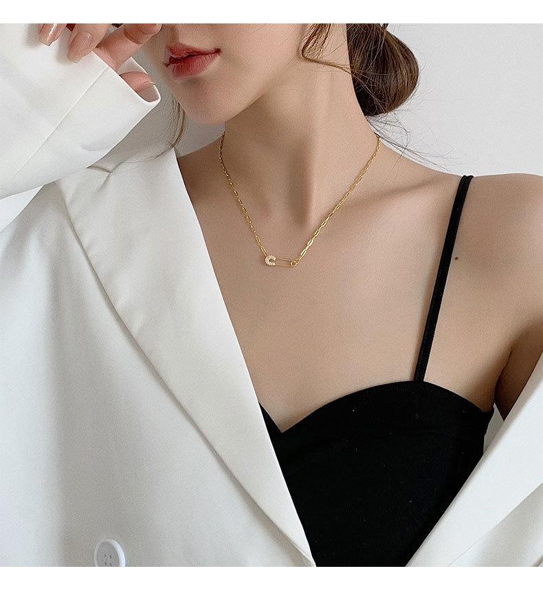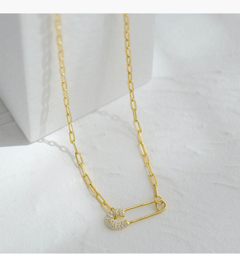 Collar de estilo coreano Shijia con forma de alfiler, diseño de nicho para mujer, cadena de clavícula de plata esterlina simple, collar Cyber Celebrant que combina con todo.