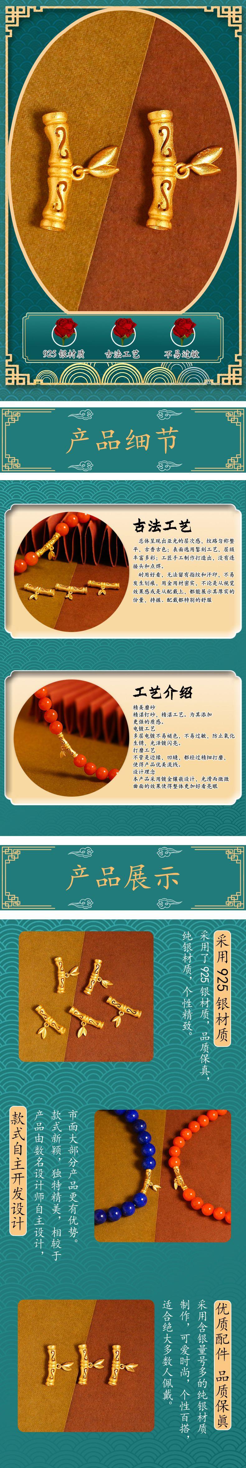 Pulsera y collar de diseño original de bricolaje con accesorios de bambú de oro antiguo bañados en plata S925, accesorios de moda a juego.