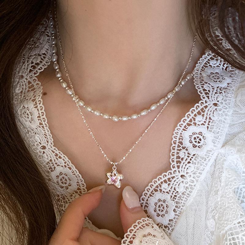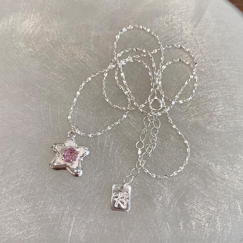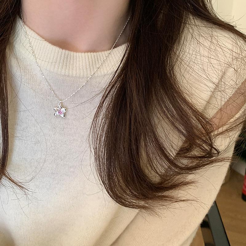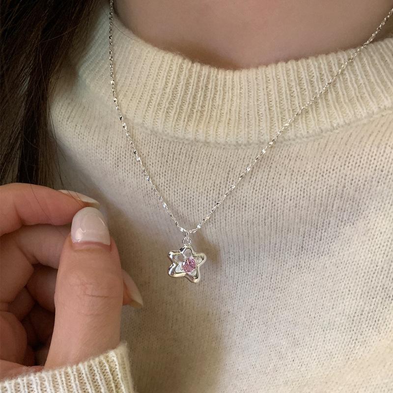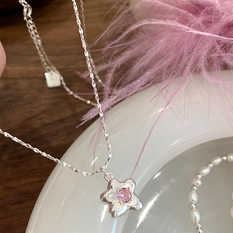 Collar de Estrella de Zircón Rosa de Diseño Nicho para Mujer Estilo Frío Moderno Exquisito Lujo Ligero de Alta Gama Elegante Cadena para Clavícula