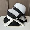 Sombrero de paja de primavera y verano, sencillo, informal, con cinta decorativa de papel y hierba, para viajes al aire libre, protección solar, para playa