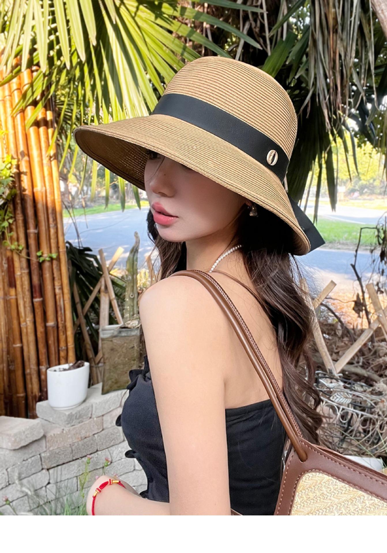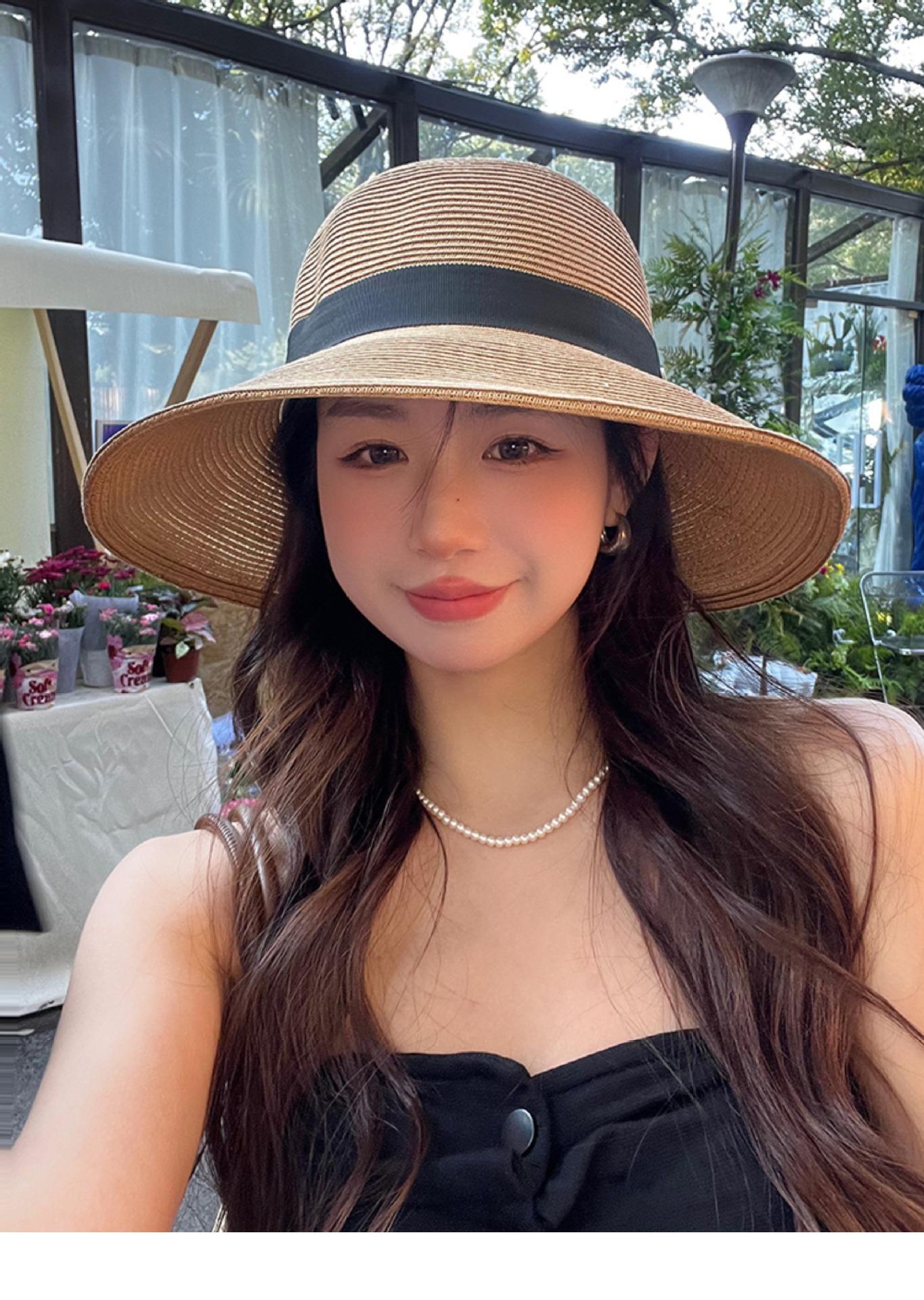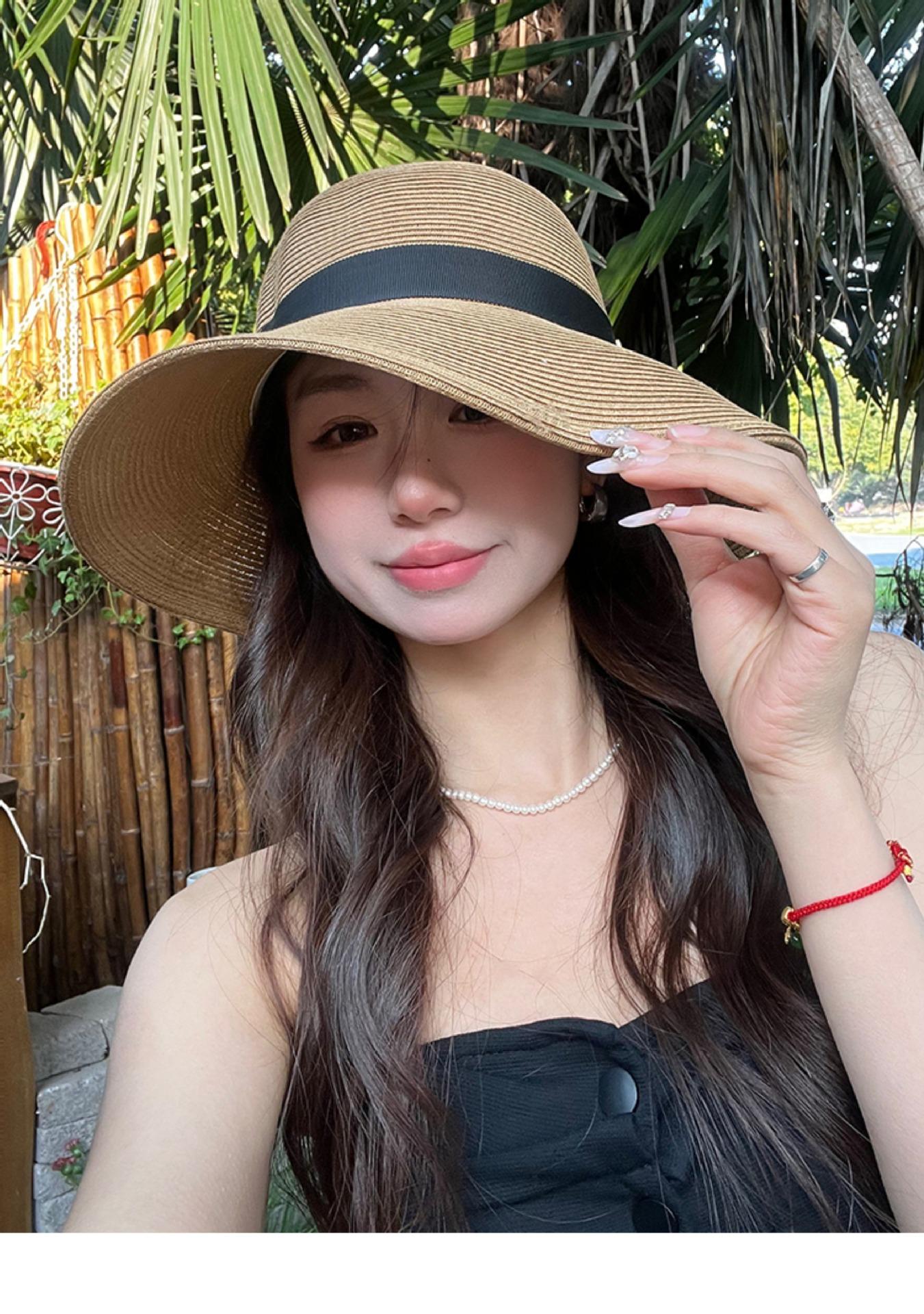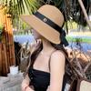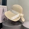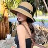 Sombrero de paja con lazo elegante de estilo francés, protector solar de madera, para viajes de verano, plegable, para playa