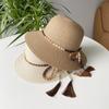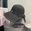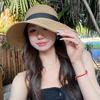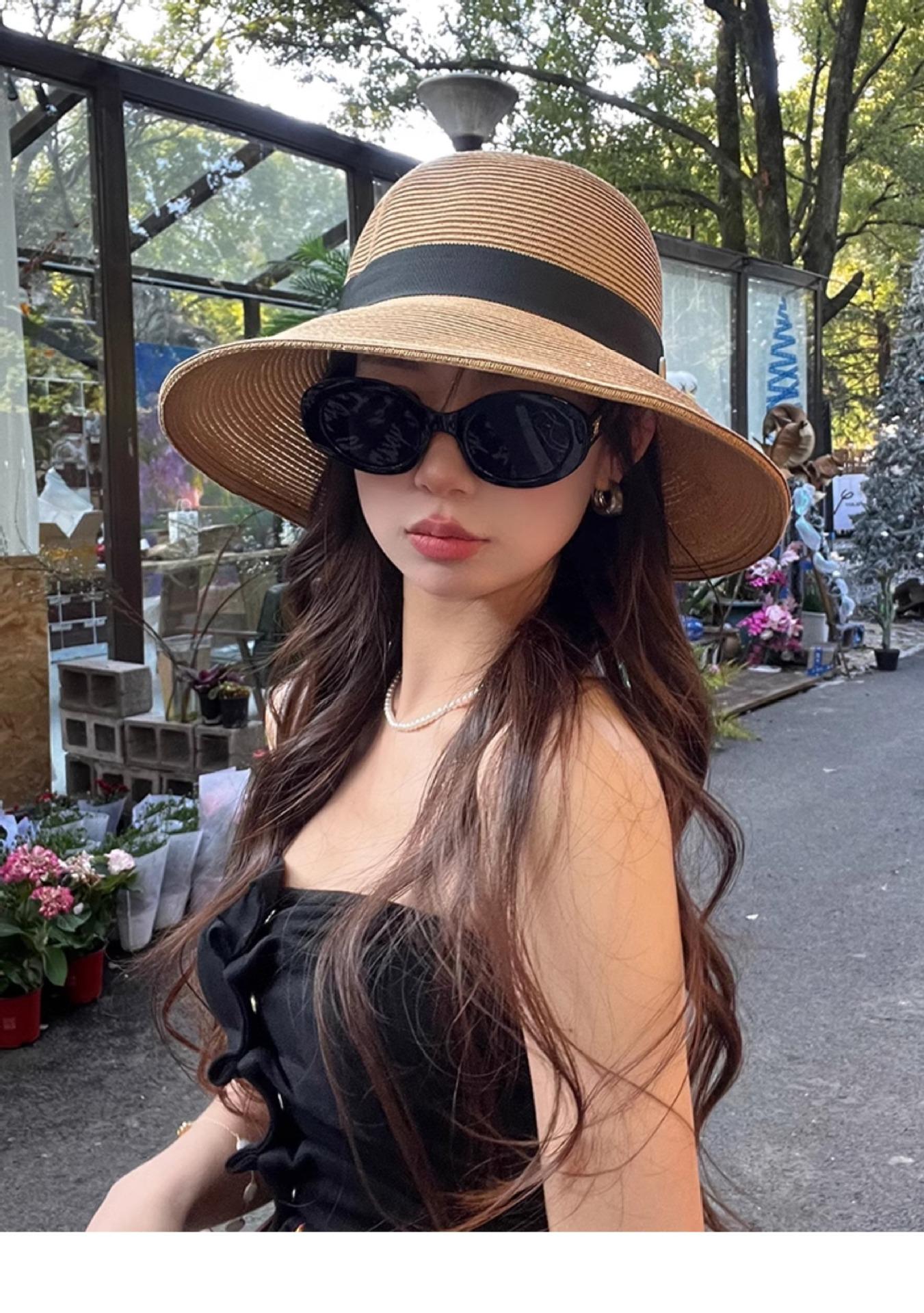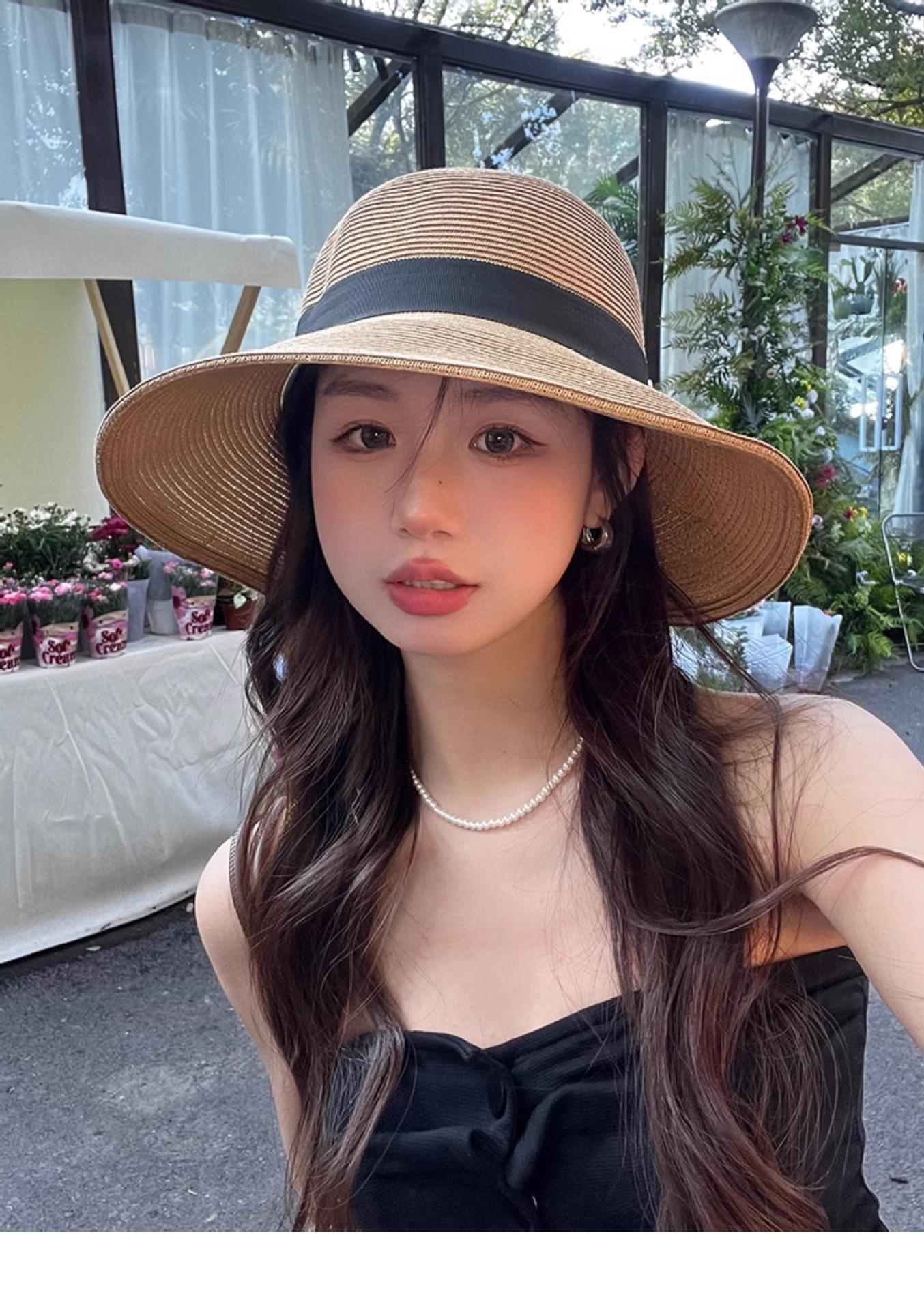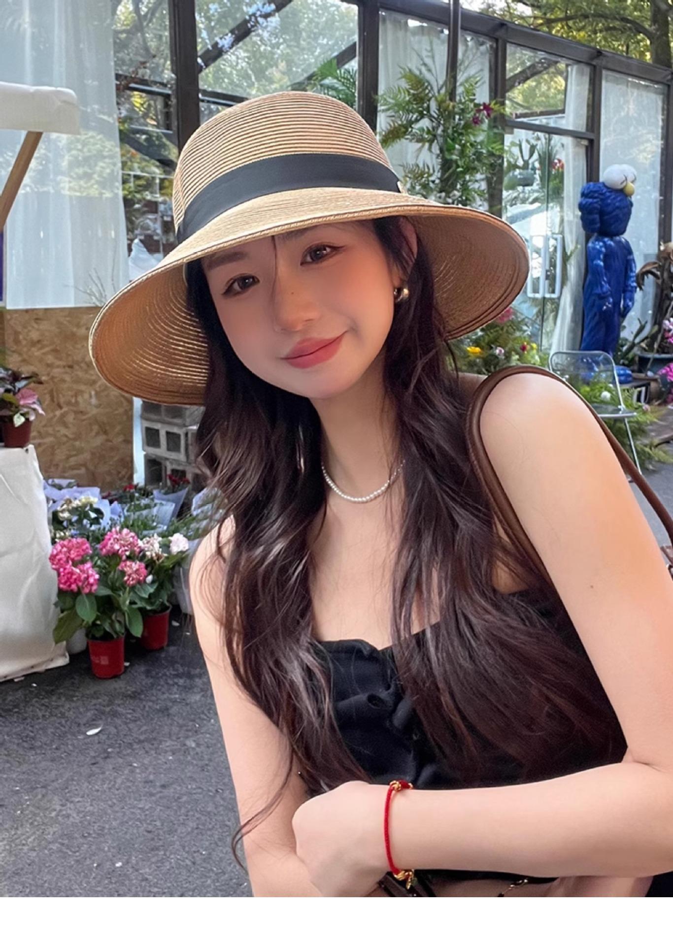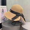 Sombrero de paja con lazo elegante de estilo francés, protector solar de madera, para viajes de verano, plegable, para playa