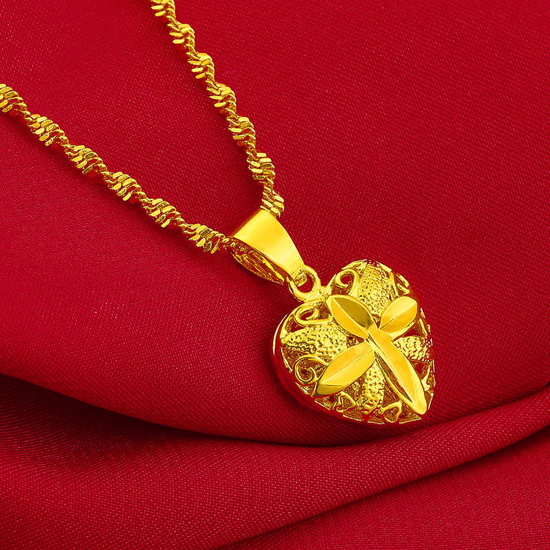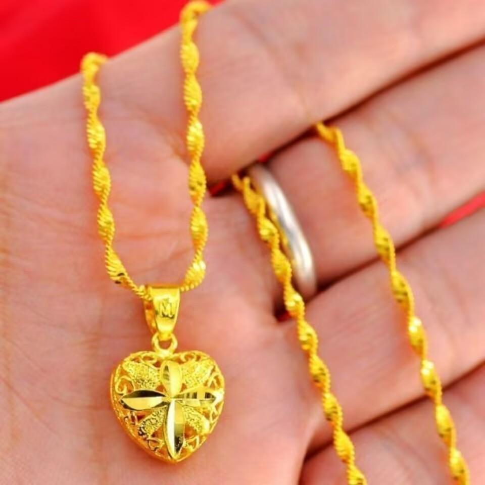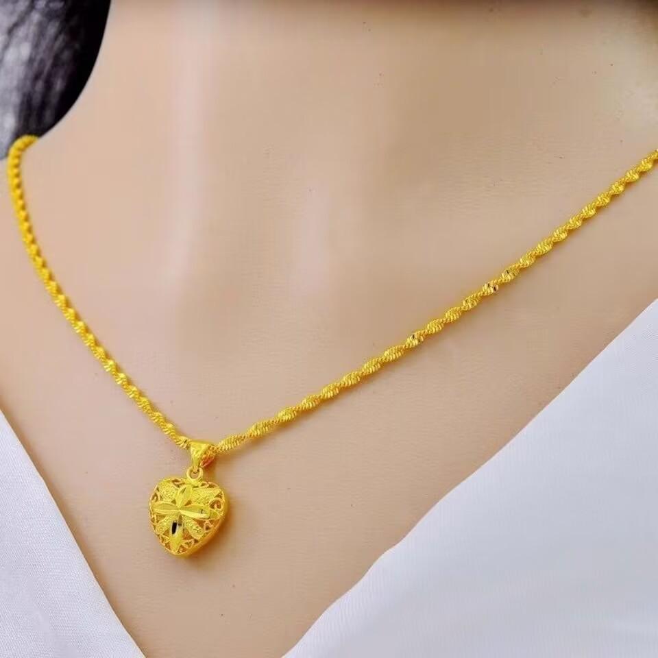 Collar chapado en oro no se desvanece colgante de amor de doble cara collar de doble onda de agua joyería chapada en oro de cobre para el cumpleaños de la novia