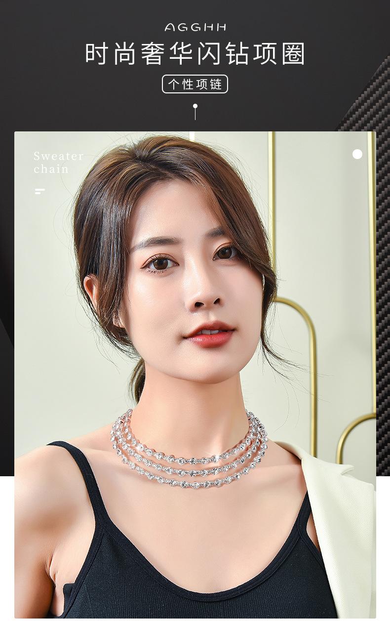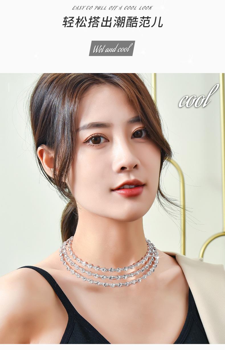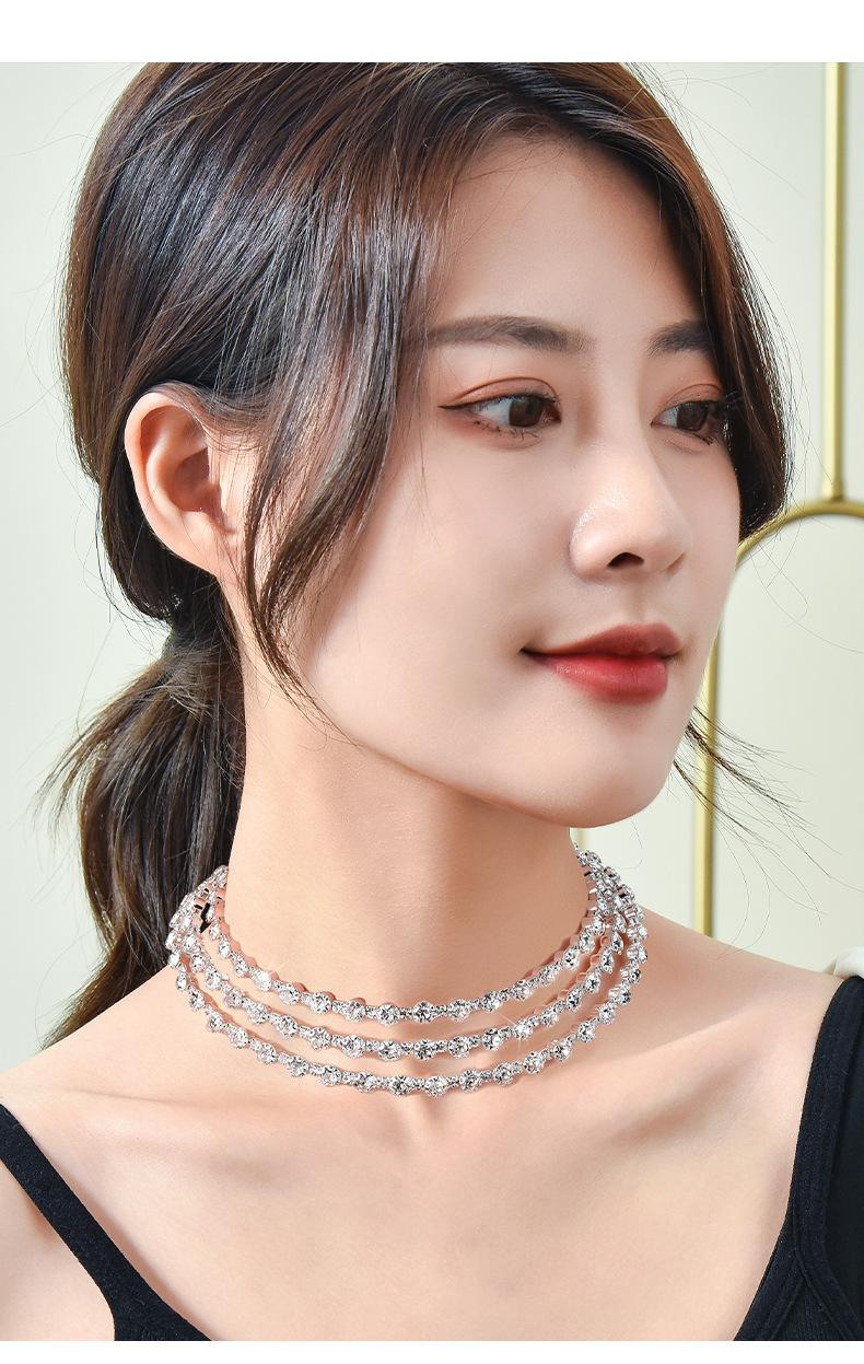 Vestido de novia corto con cuello de diamantes de imitación, moda de lujo, superllamativas, exquisitas, multicapa, para fotografía de boda, cadena para el cuello, cadena para clavícula de mujer