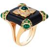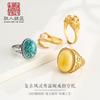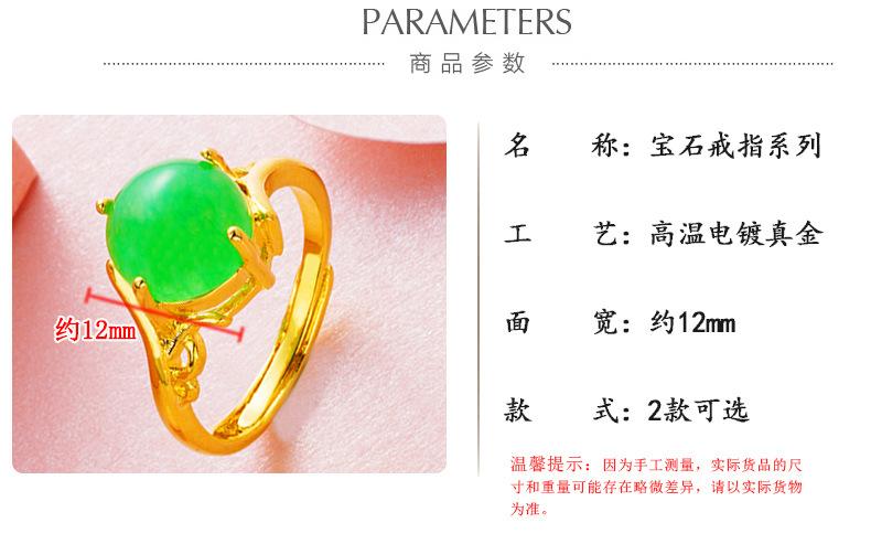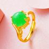 Anillo abierto de imitación de esmeralda con gema para mujer, chapado en oro, arena de Vietnam, latón y diamantes de imitación de piedra natural.